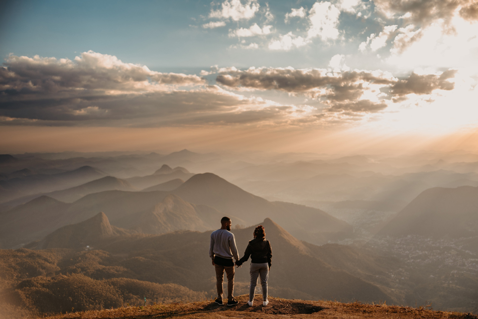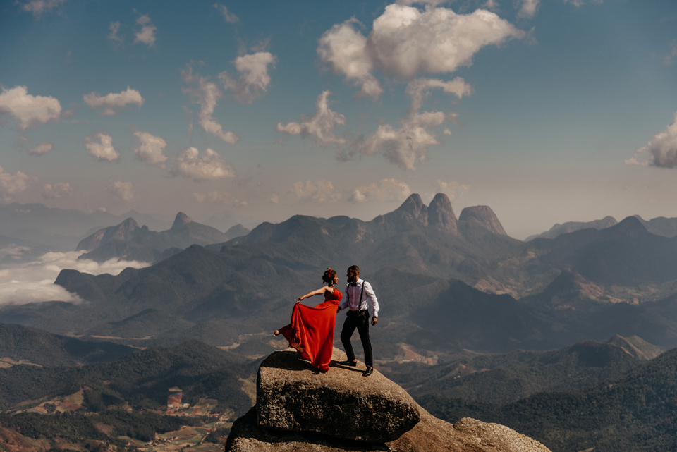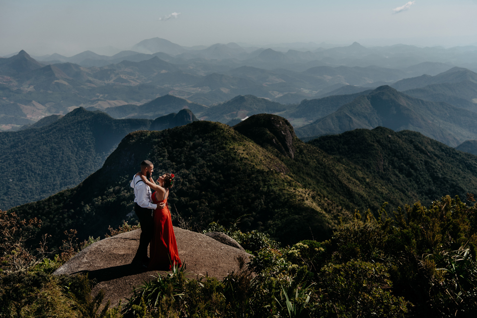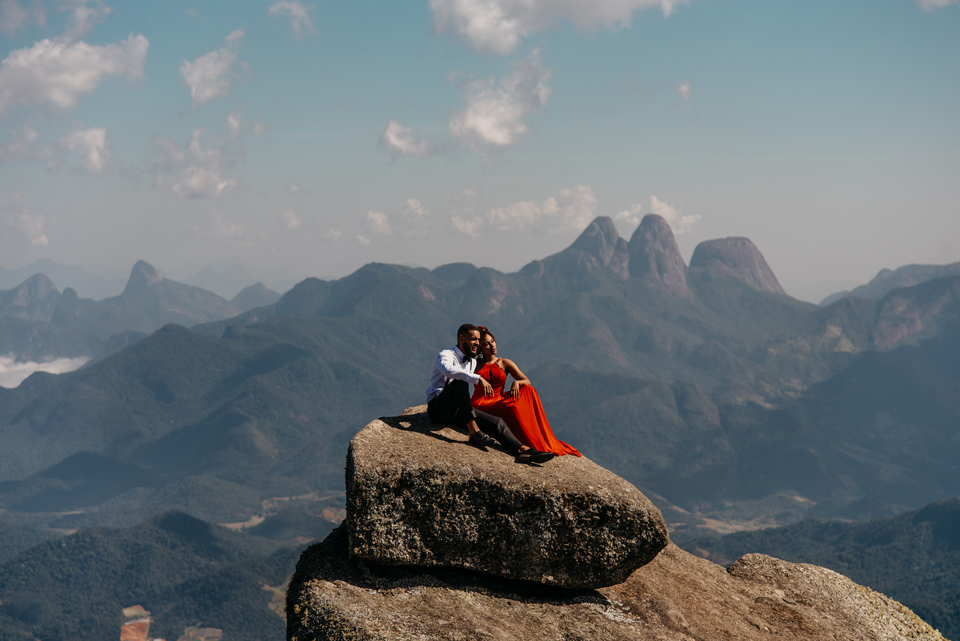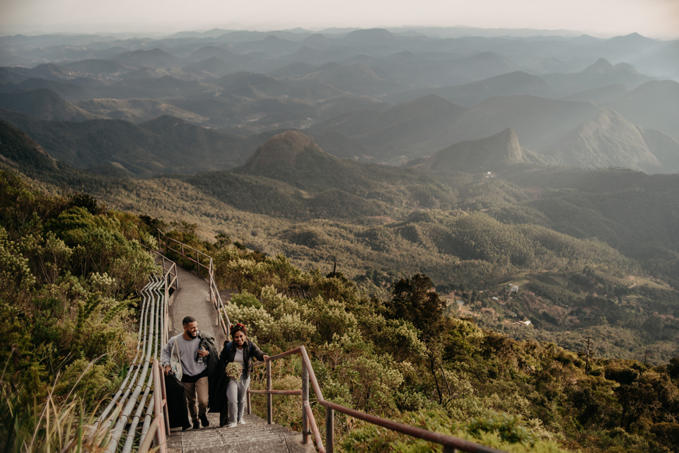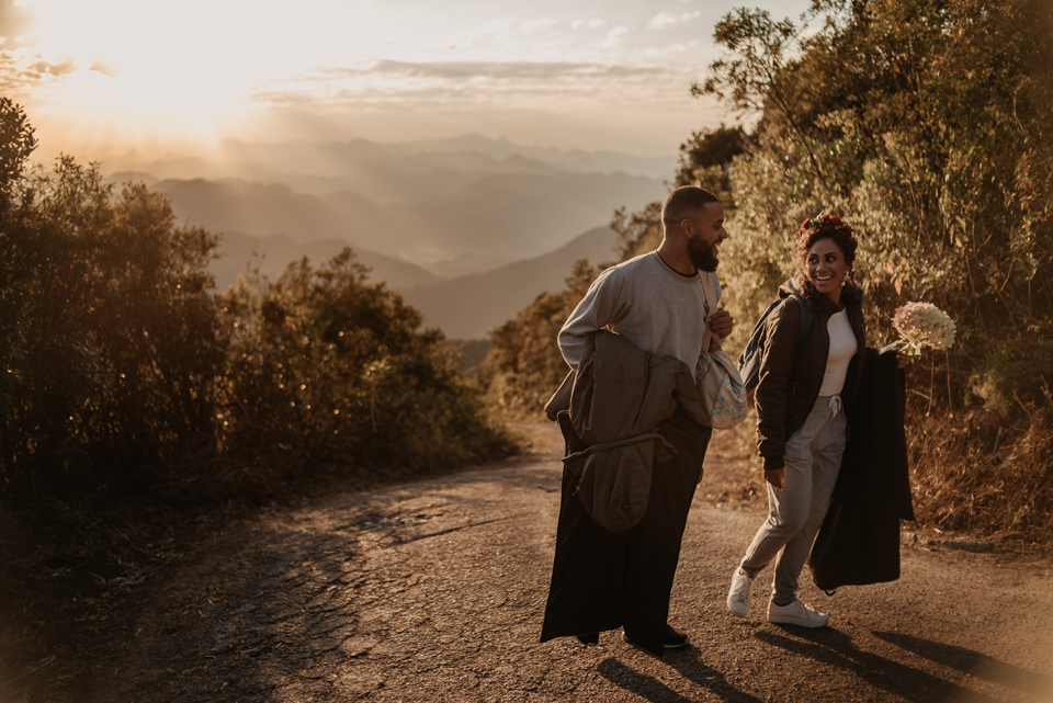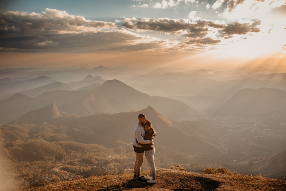 No alto do Pico do Caledônia, enquanto o sol ainda despertava, Thaina e Rhuan escolheram celebrar o amor do jeito mais puro: só os dois, a imensidão da serra e um céu que parecia abençoar cada promessa silenciosa.