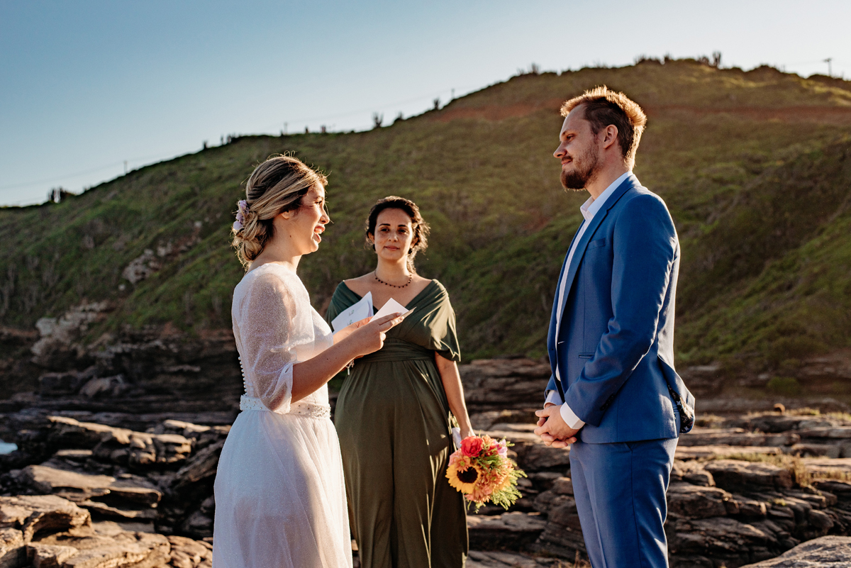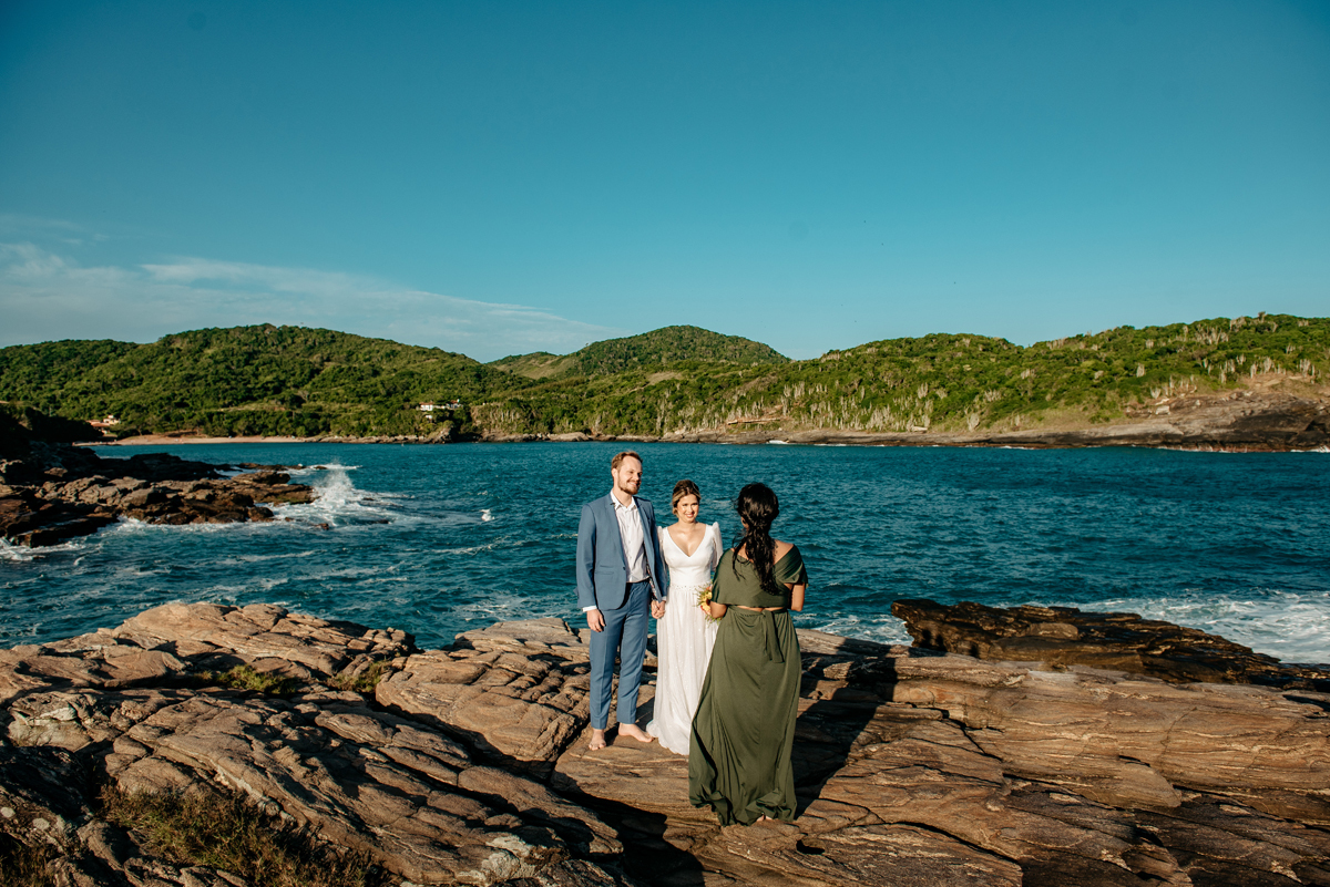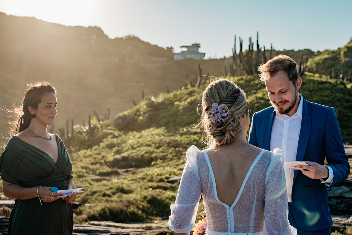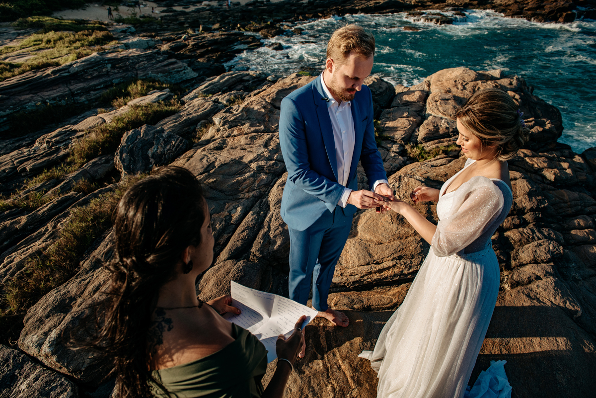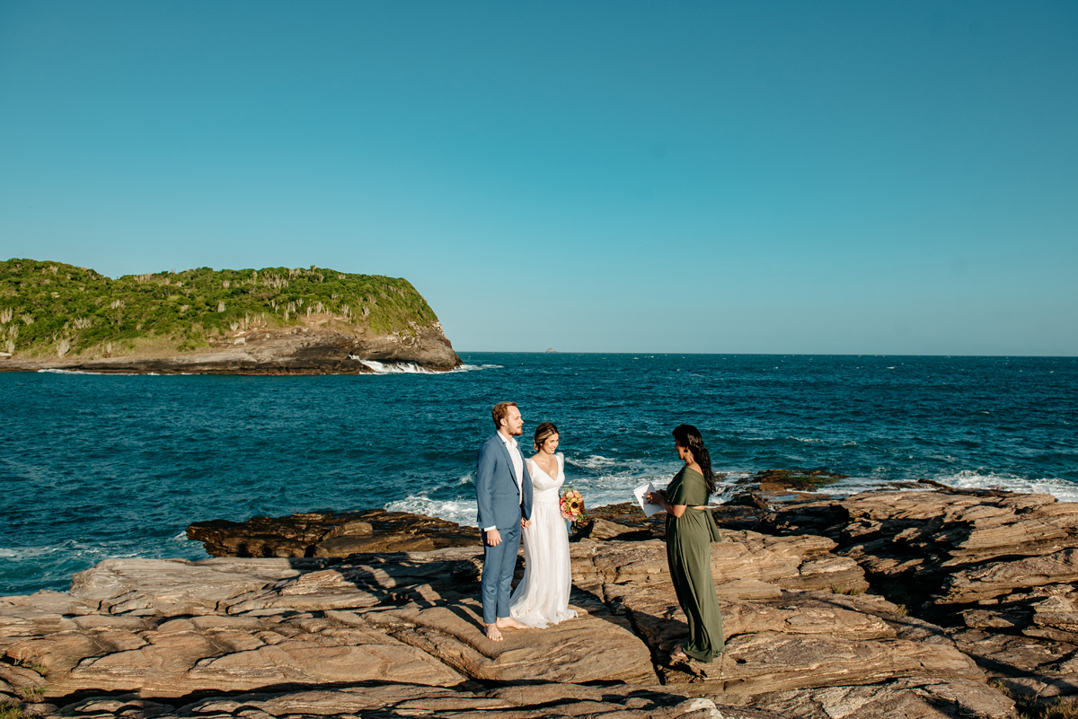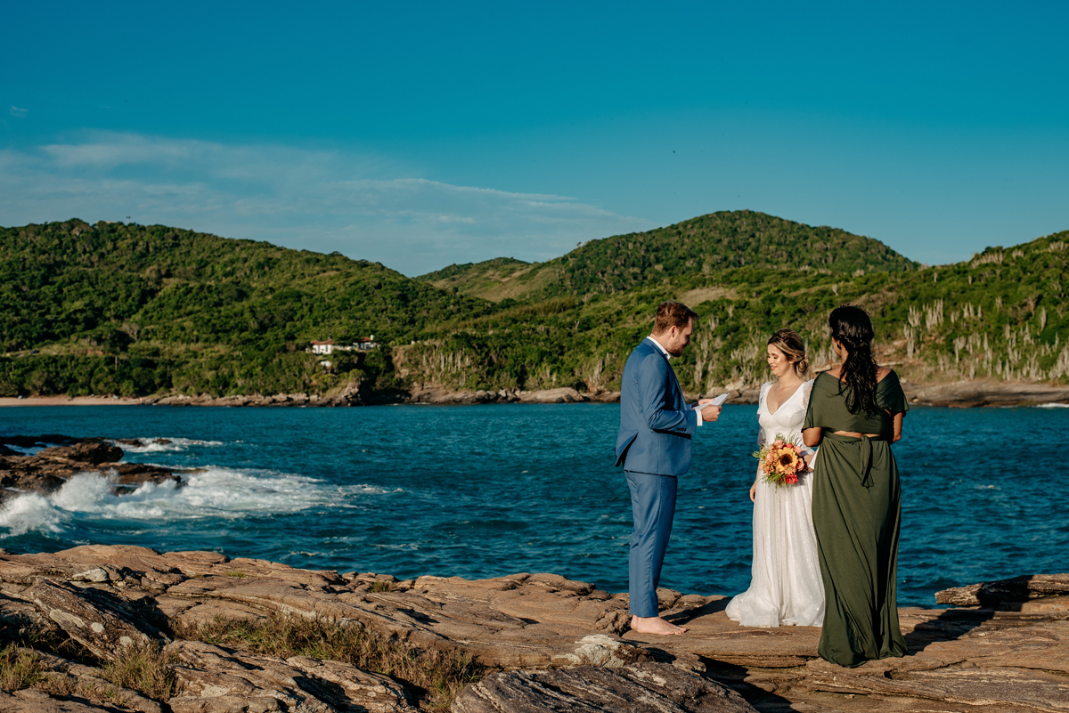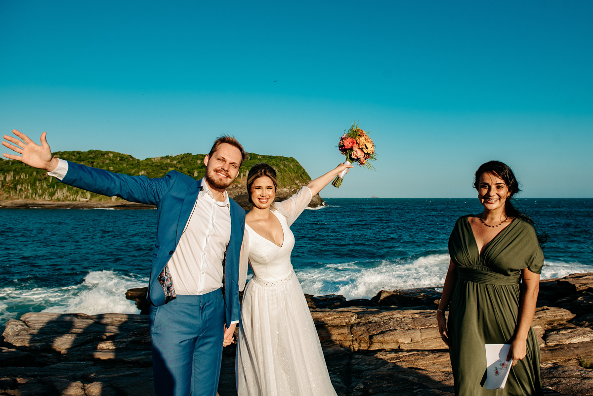 Com a luz dourada batendo no mar, o vento suave e uma sintonia que transbordava, eles disseram “sim” da forma mais autêntica: bonita, verdadeira e profundamente deles