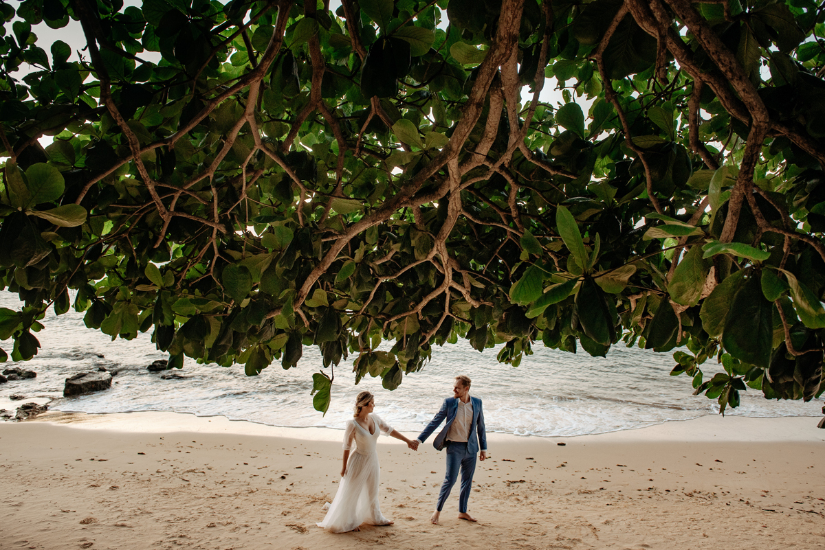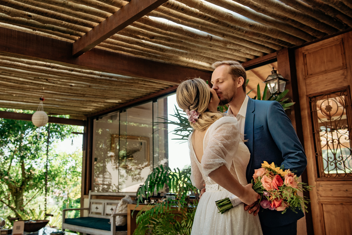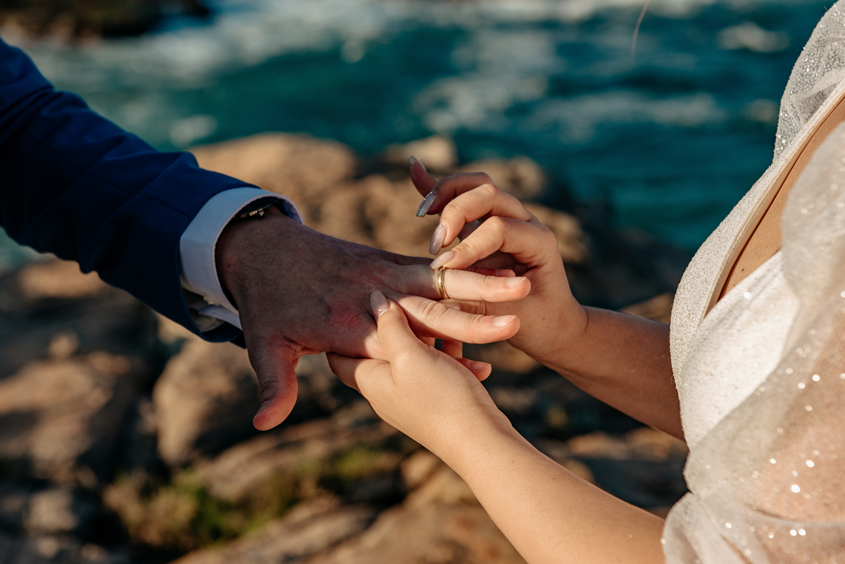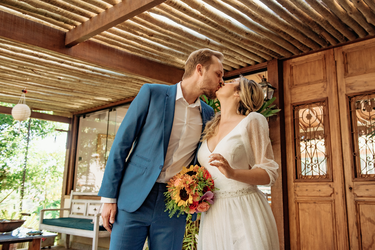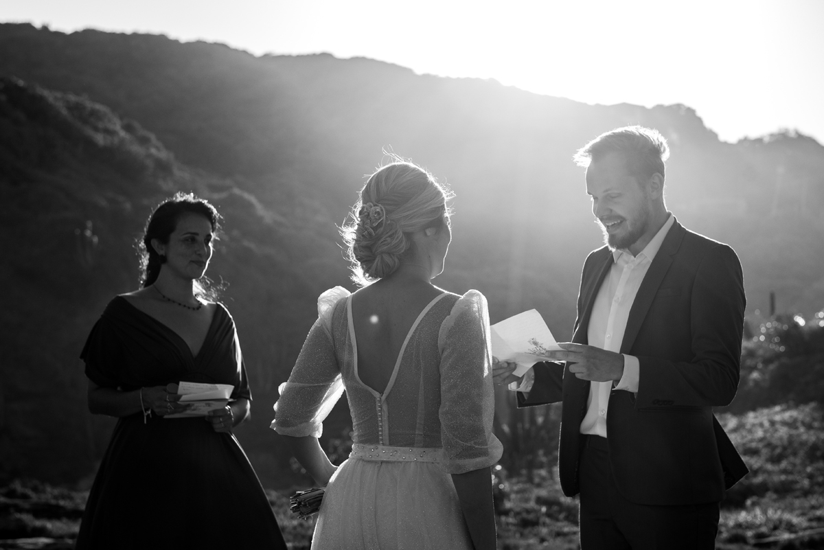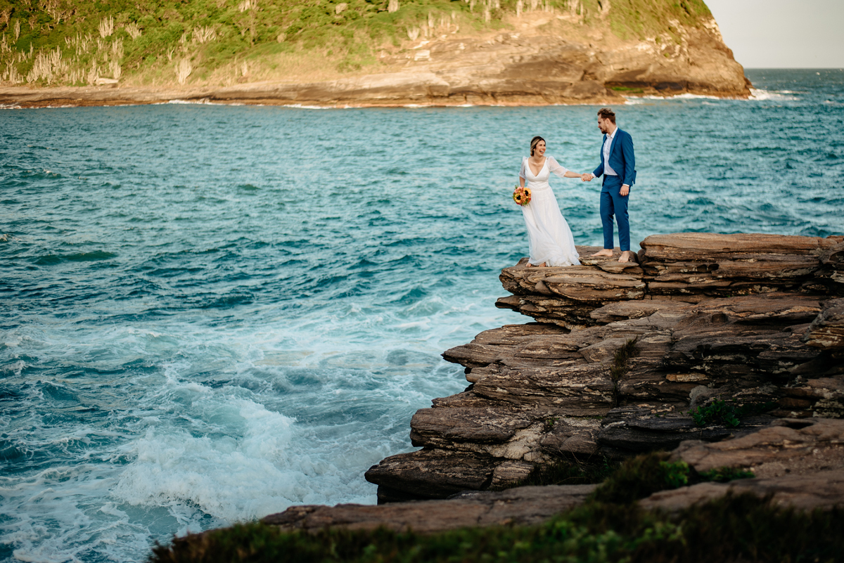 Com a luz dourada batendo no mar, o vento suave e uma sintonia que transbordava, eles disseram “sim” da forma mais autêntica: bonita, verdadeira e profundamente deles