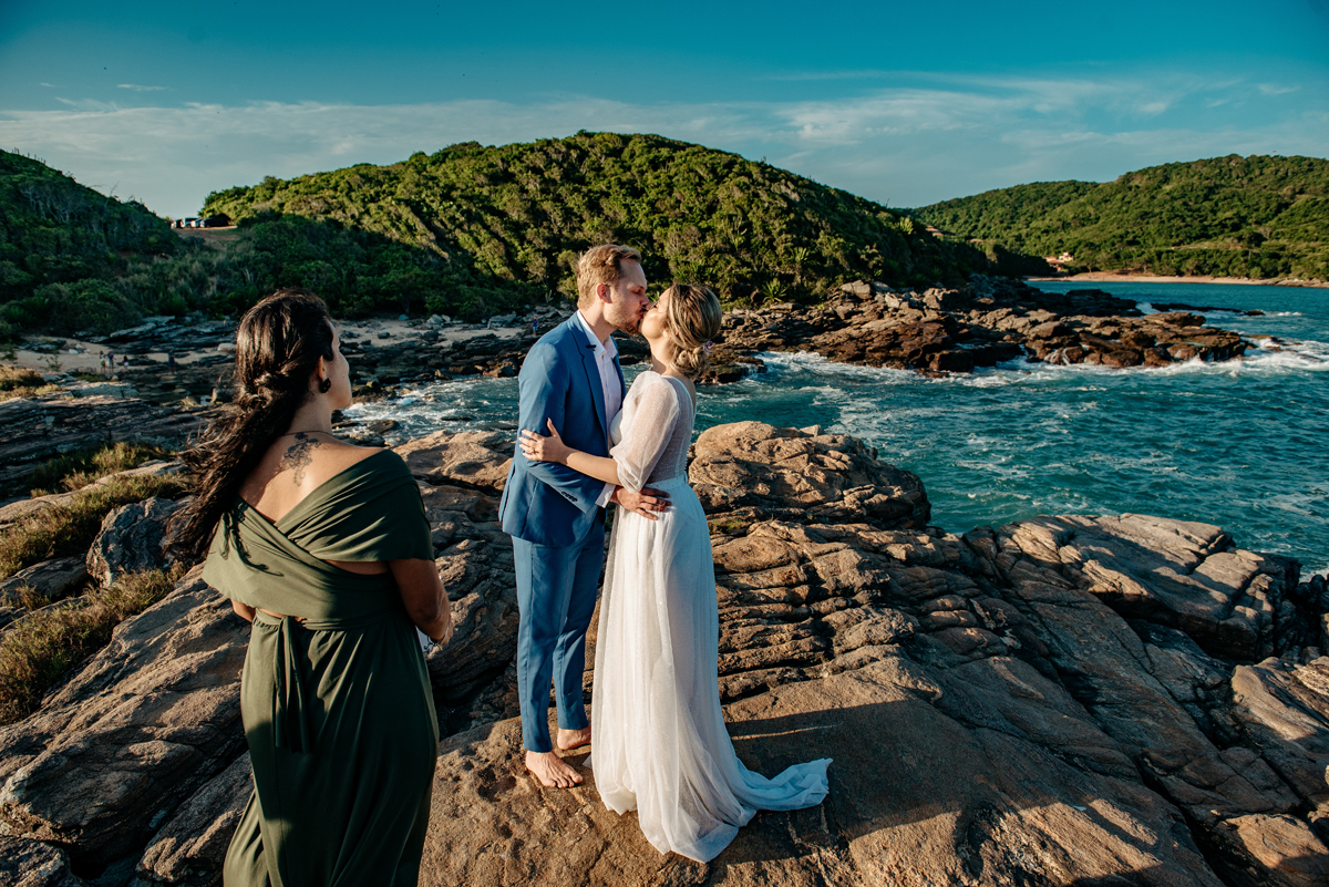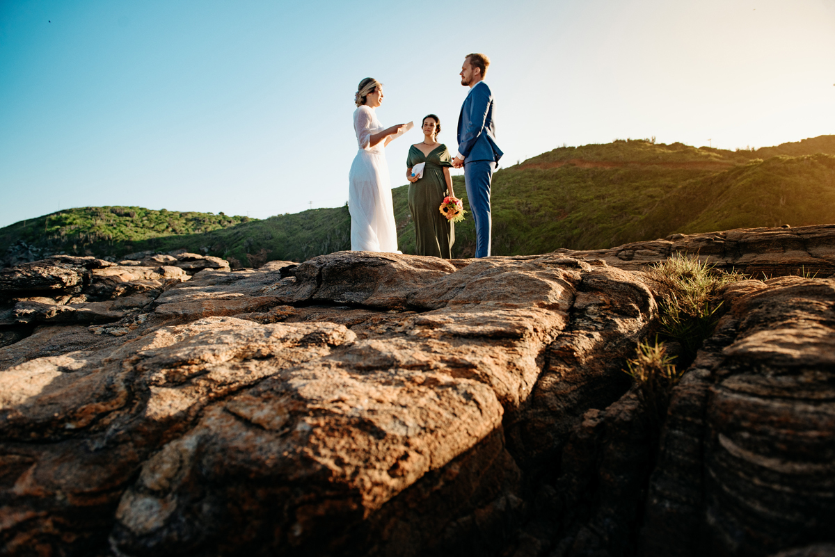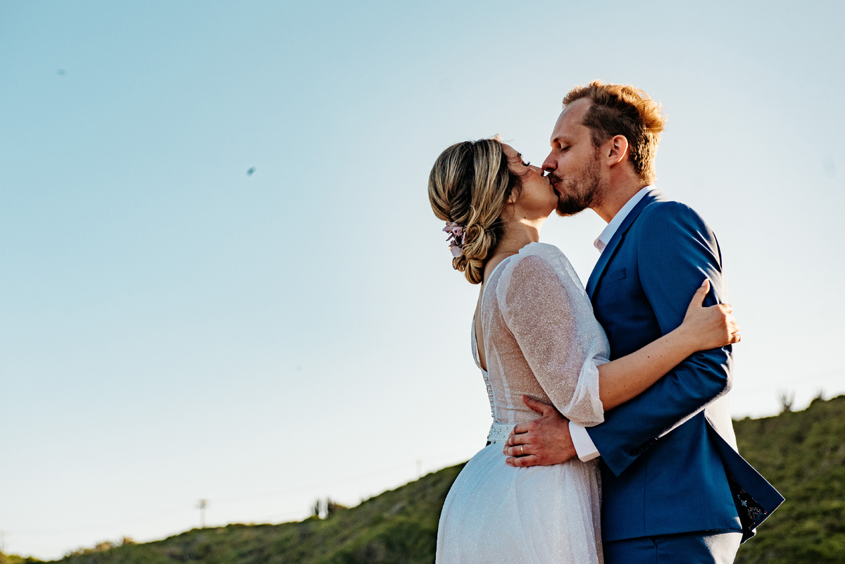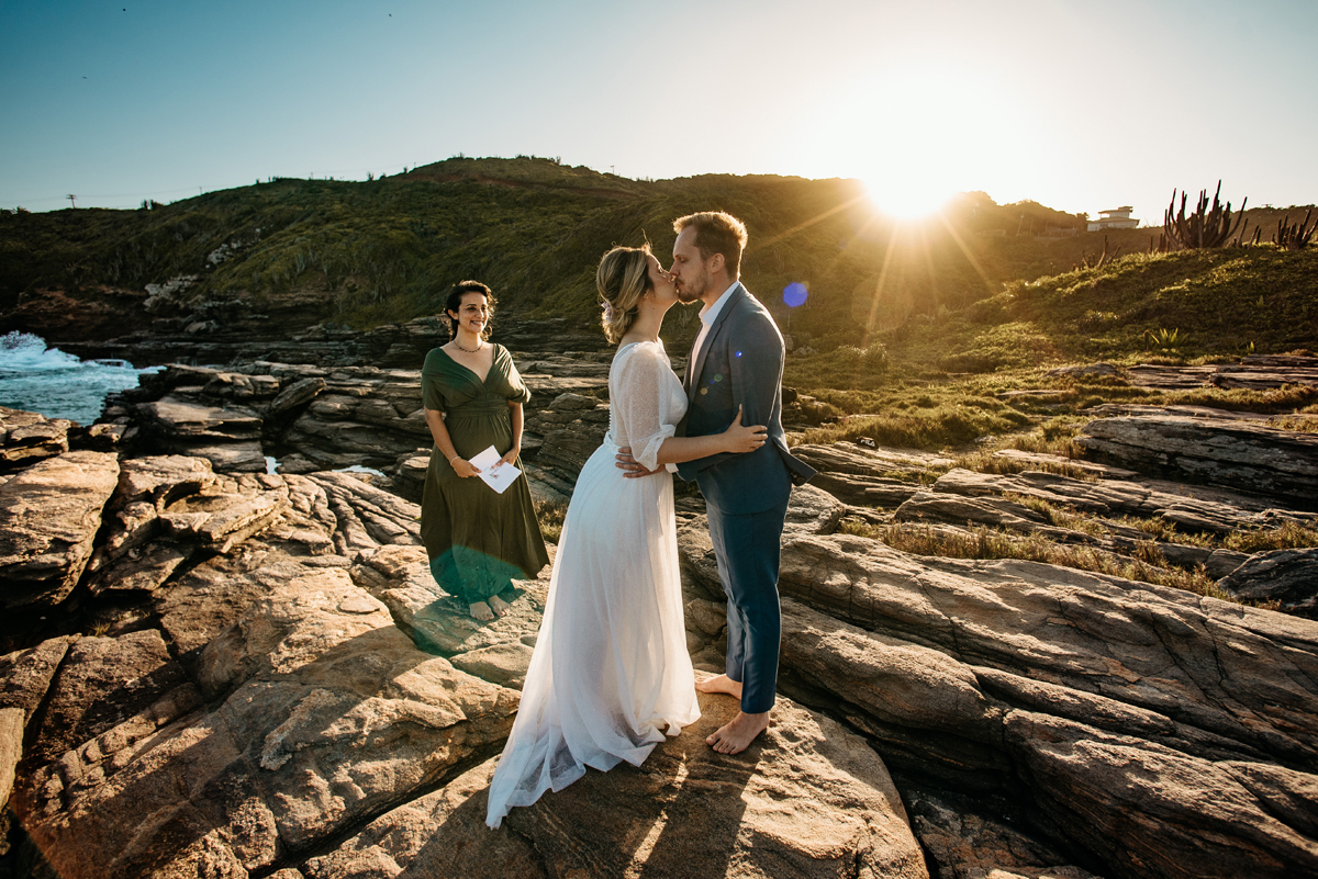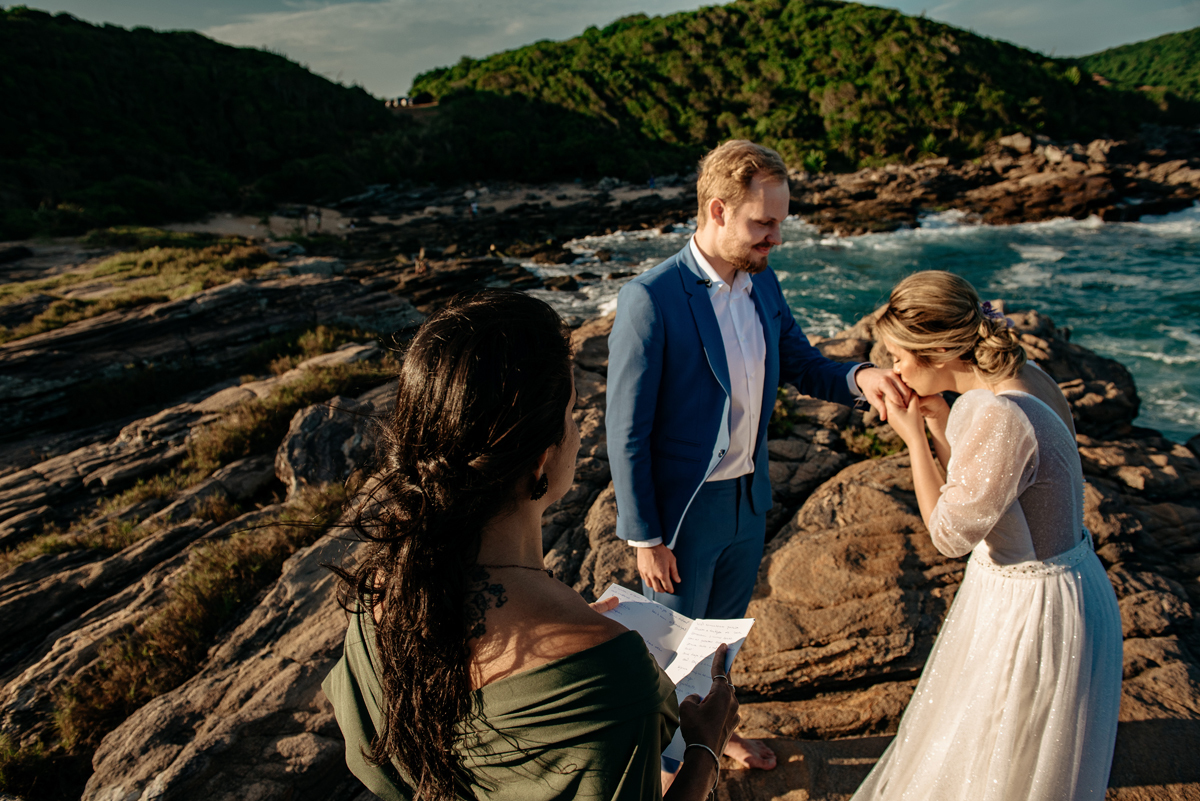 Na Praia da Foca, sob o pôr do sol que deixava tudo ainda mais bonito, Ericka e Gustavo viveram um elopement cheio de alma, estética e sentimento.