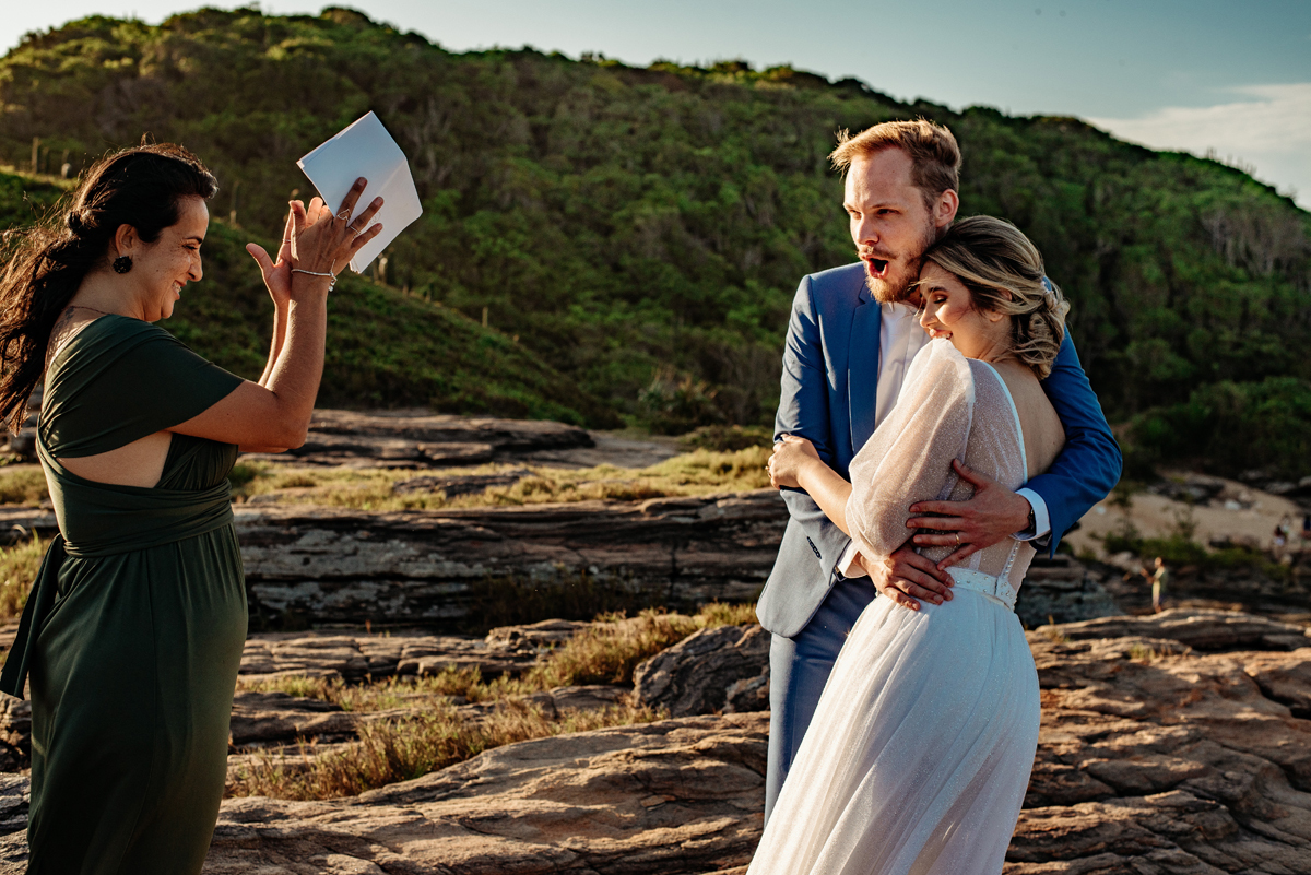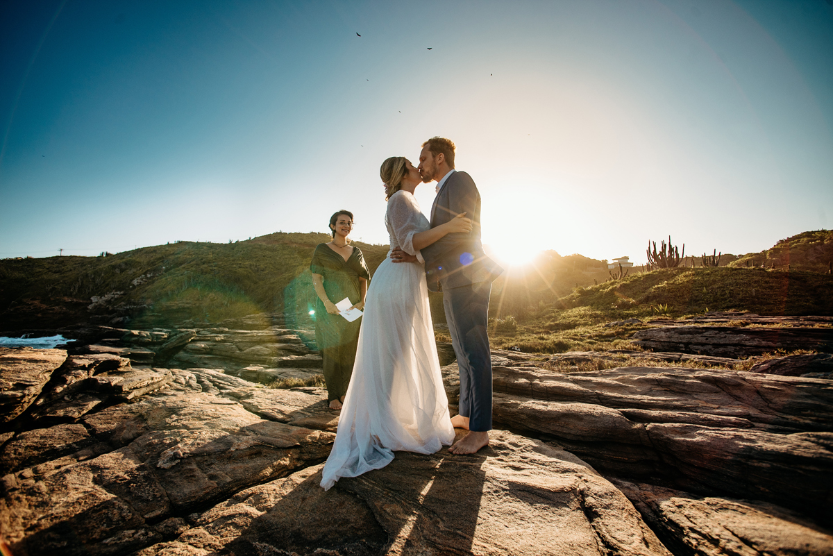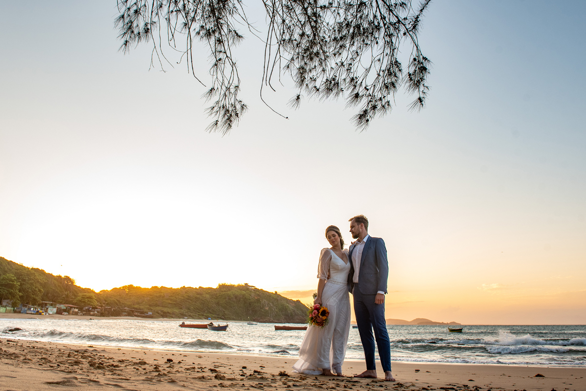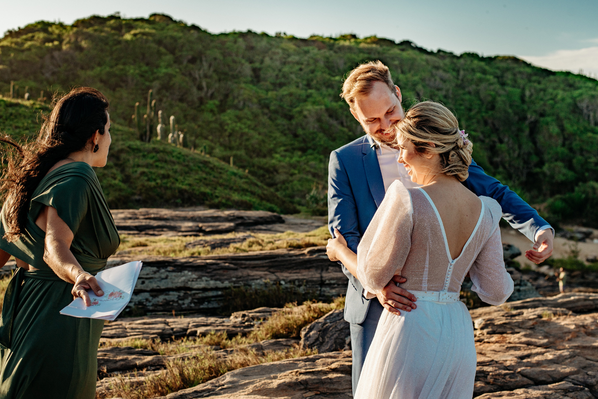 Na Praia da Foca, sob o pôr do sol que deixava tudo ainda mais bonito, Ericka e Gustavo viveram um elopement cheio de alma, estética e sentimento.