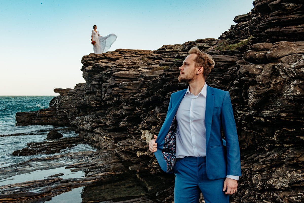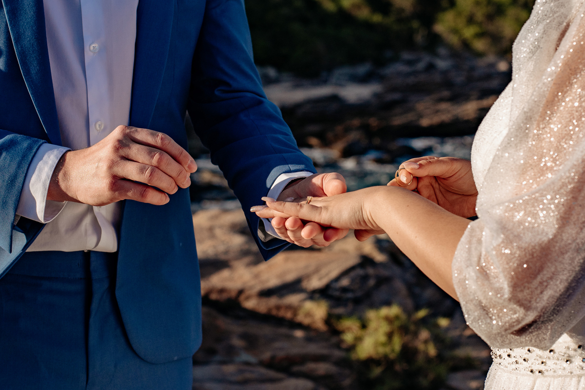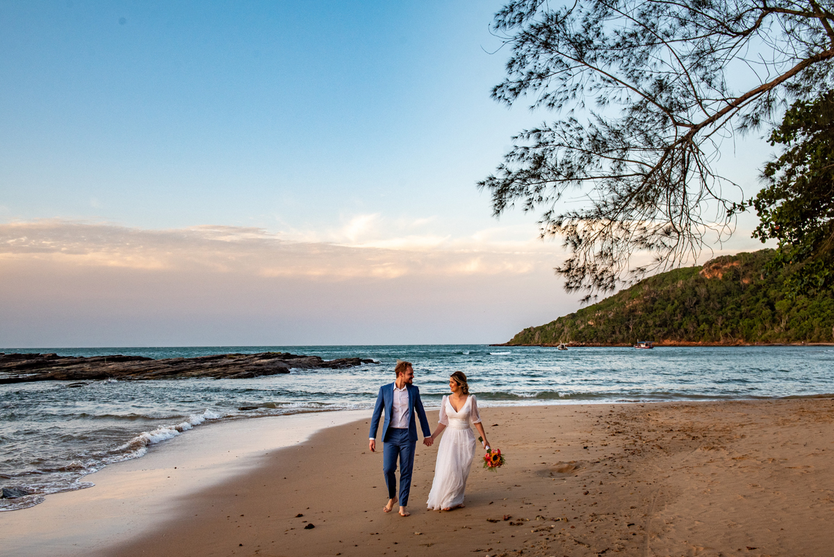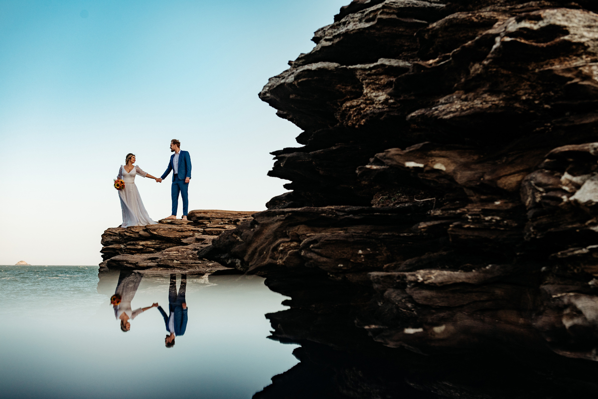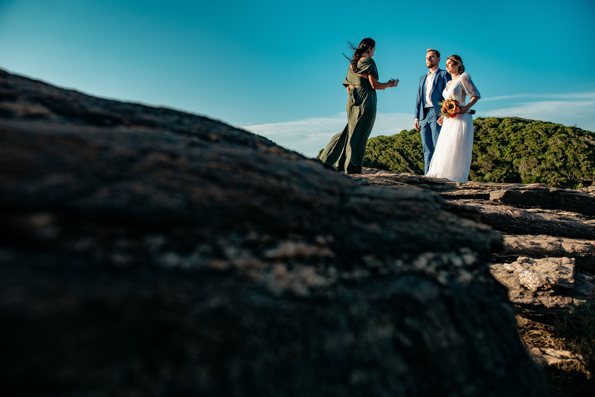Na Praia da Foca, sob o pôr do sol que deixava tudo ainda mais bonito, Ericka e Gustavo viveram um elopement cheio de alma, estética e sentimento.