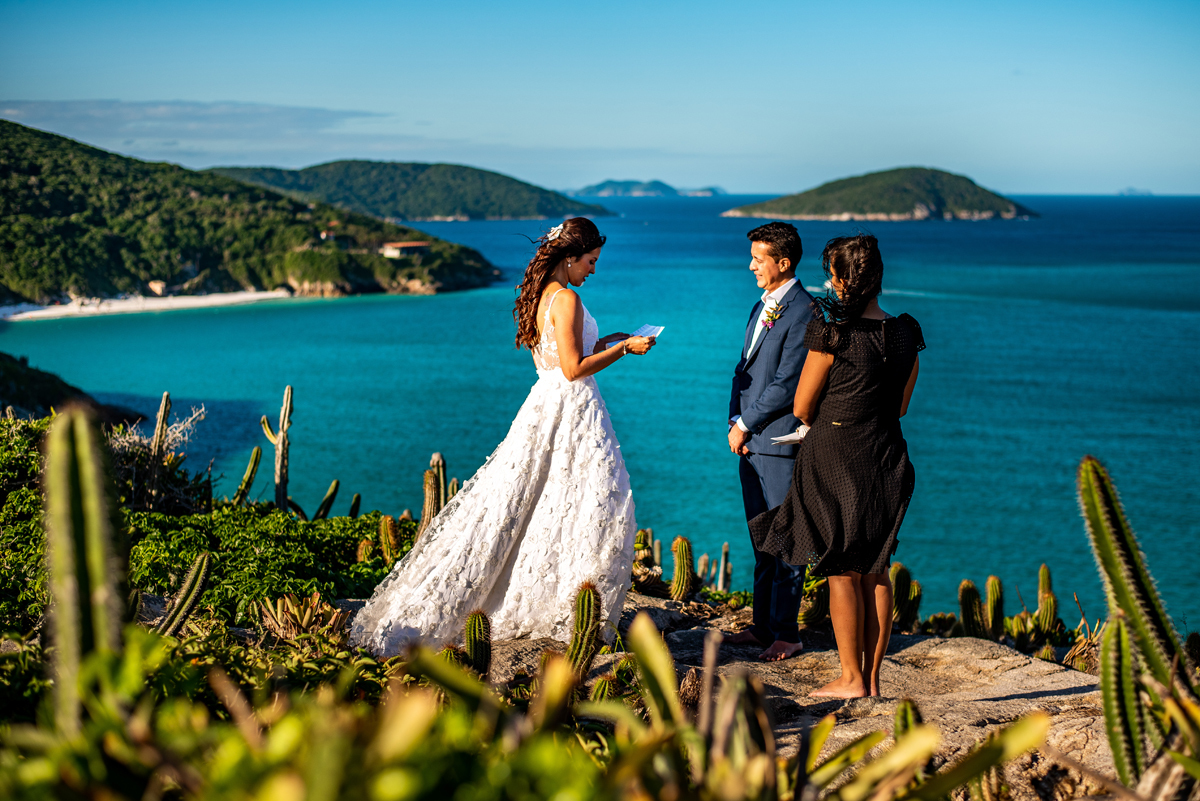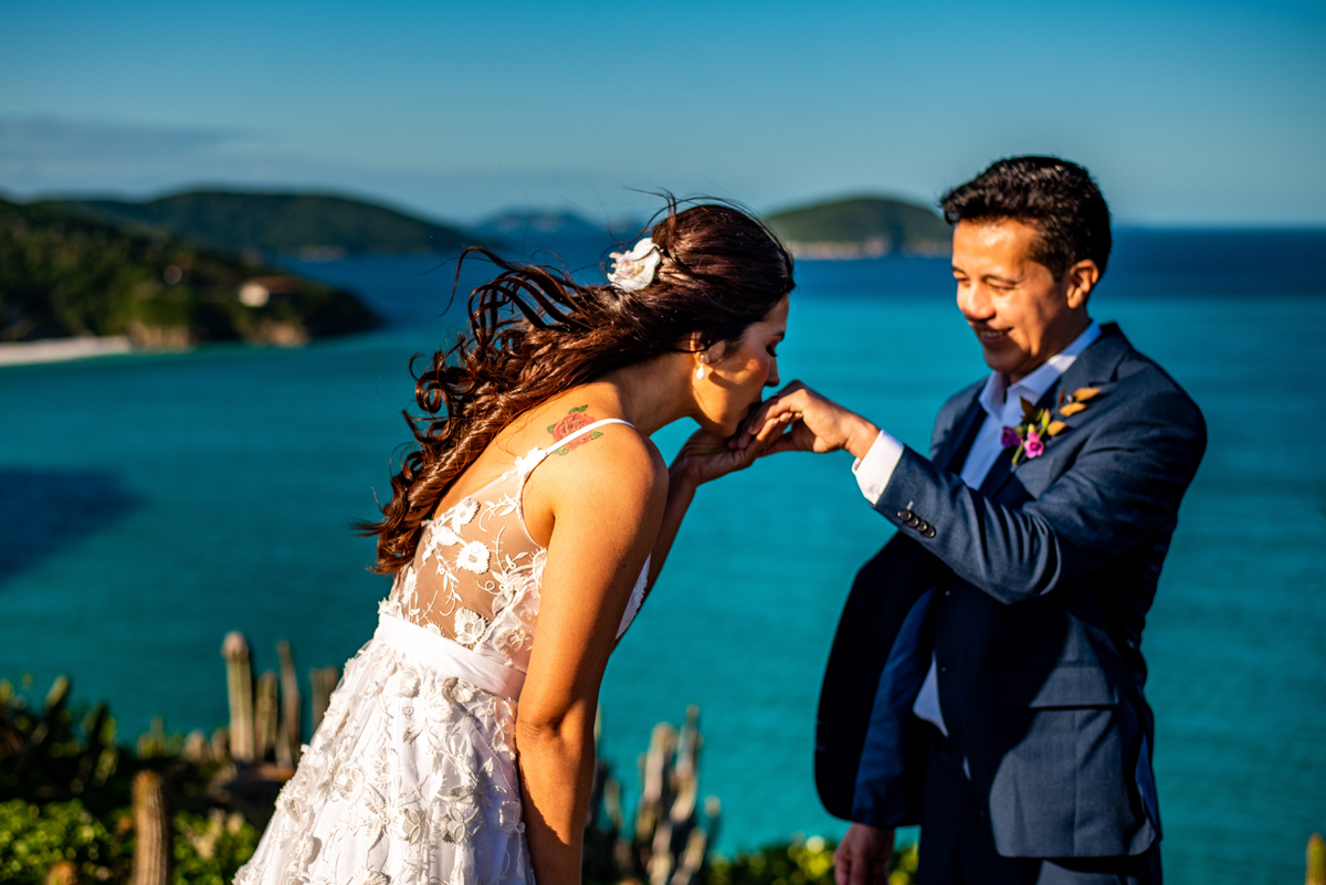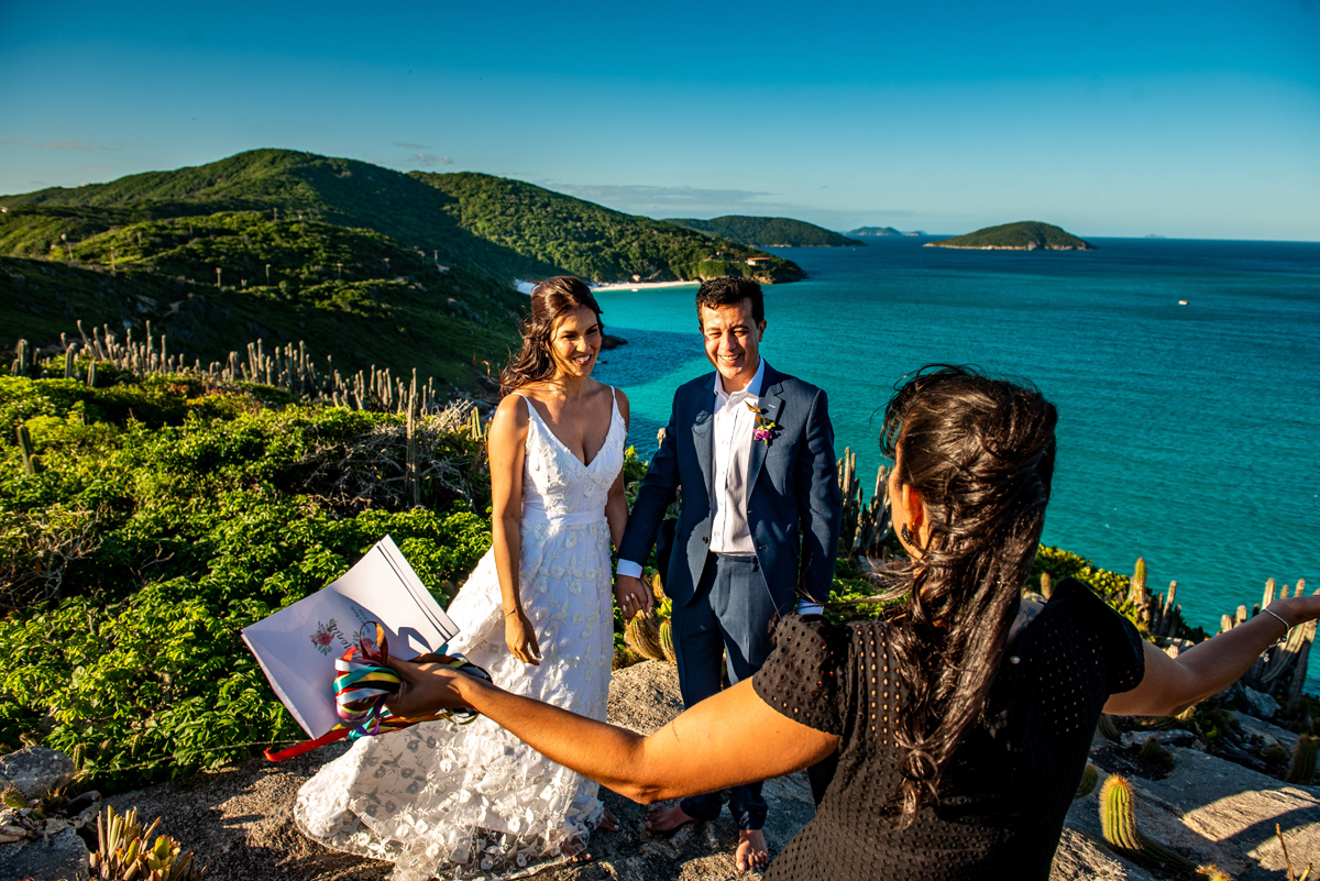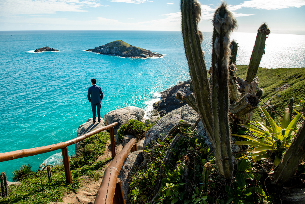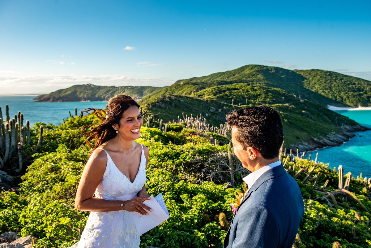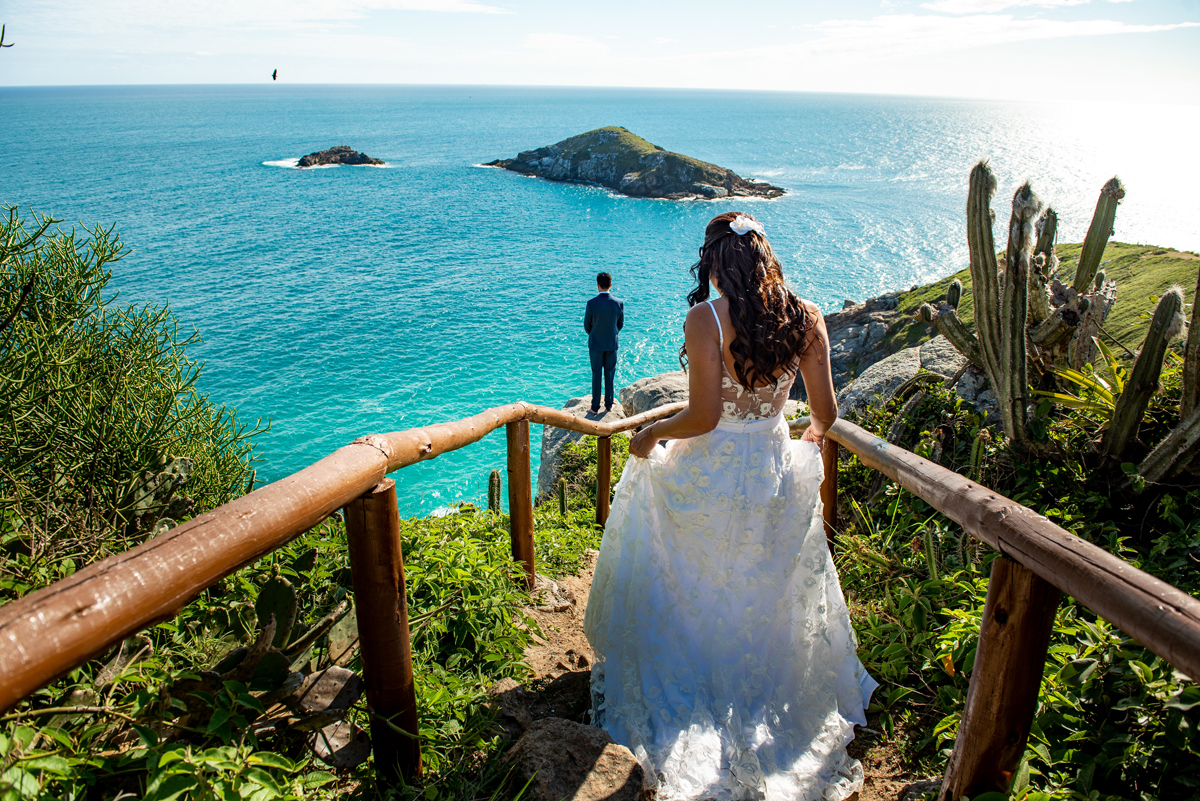 No alto de um mirante em Arraial do Cabo, com o mar azul profundo como testemunha, Rosi e Marcelo disseram “sim” ao amor que construíram com calma, verdade e parceria.