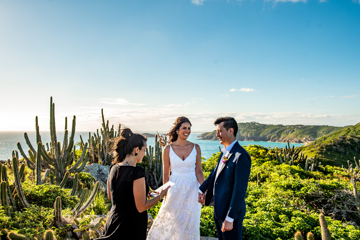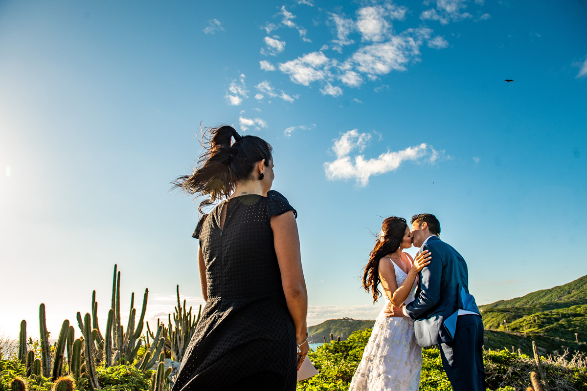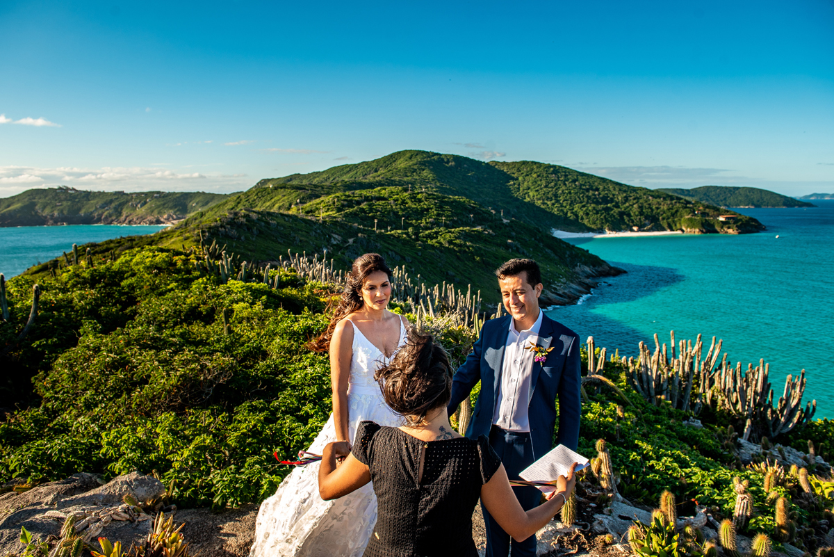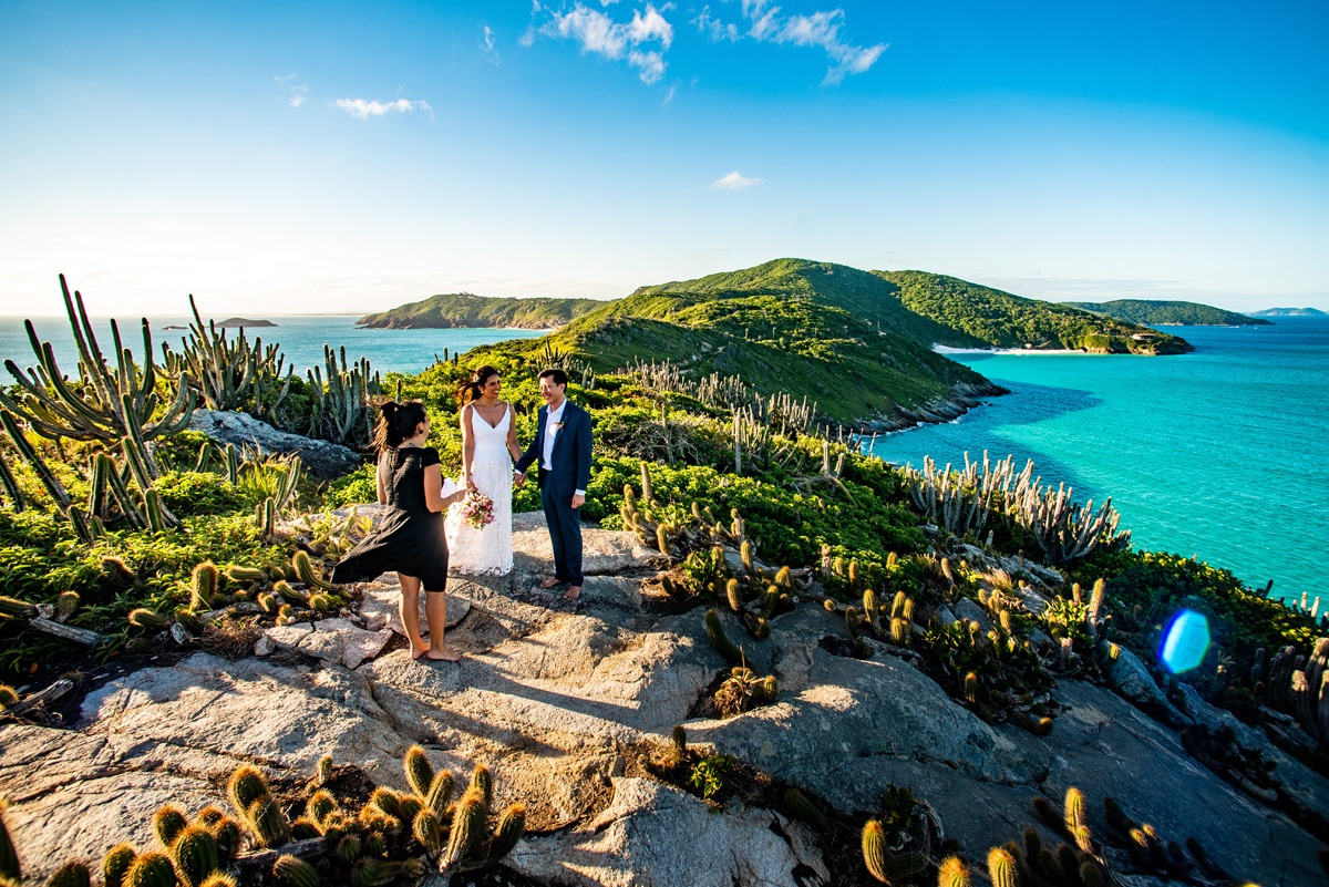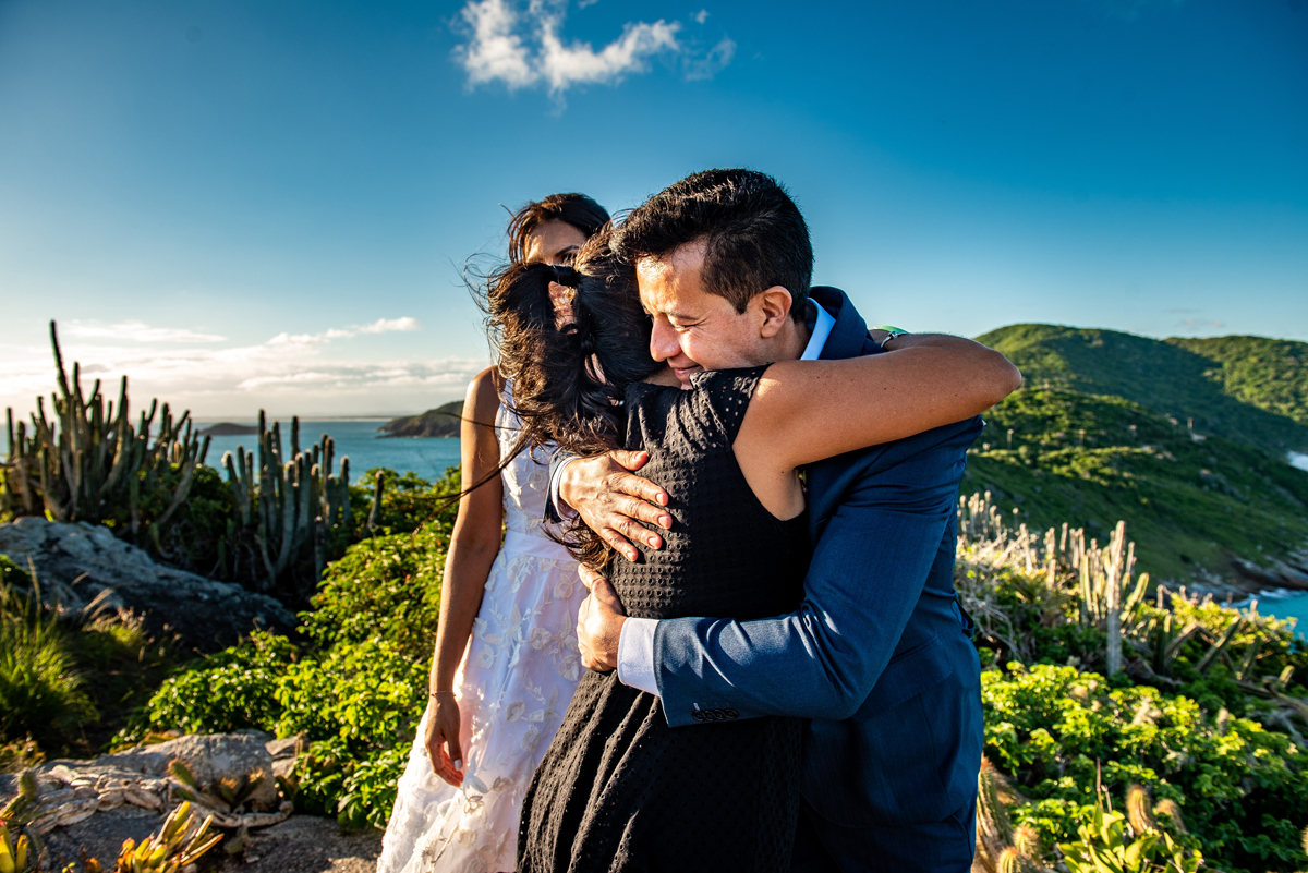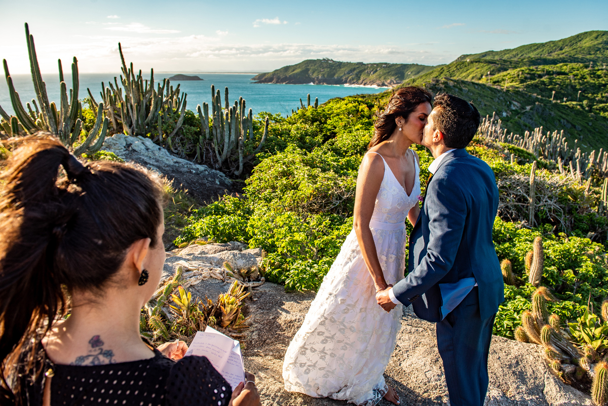 No alto de um mirante em Arraial do Cabo, com o mar azul profundo como testemunha, Rosi e Marcelo disseram “sim” ao amor que construíram com calma, verdade e parceria.