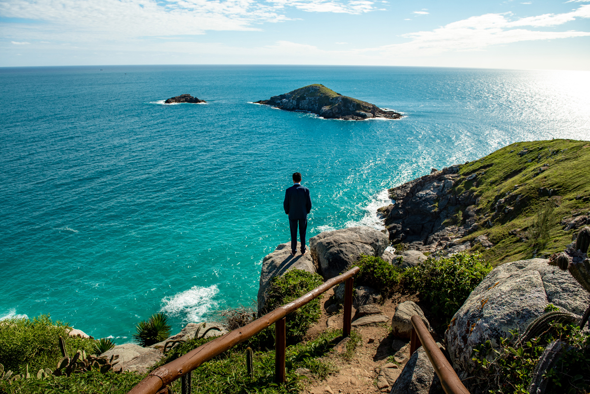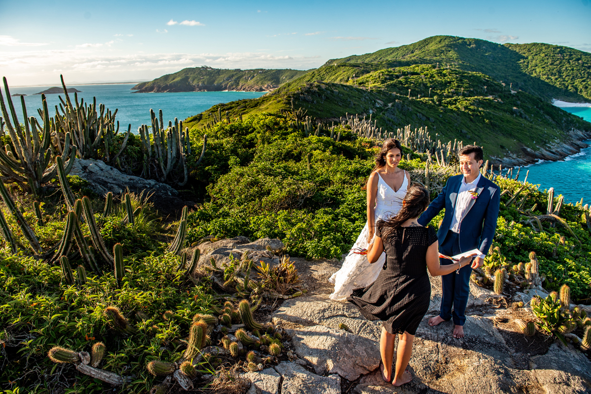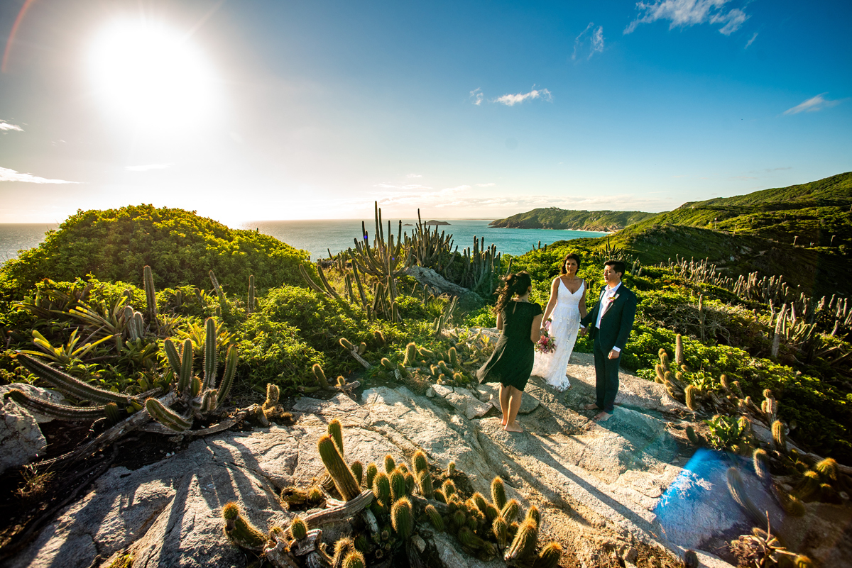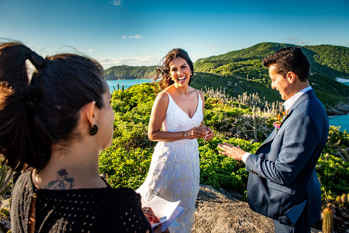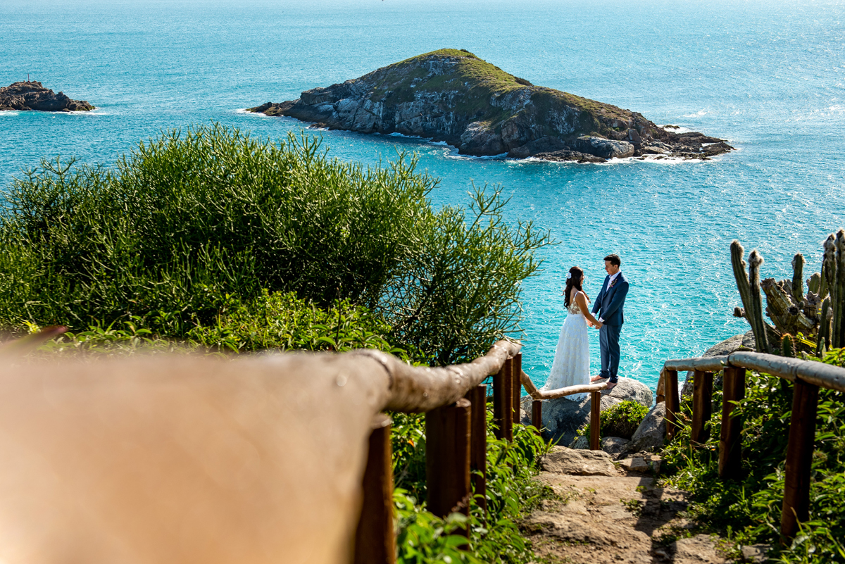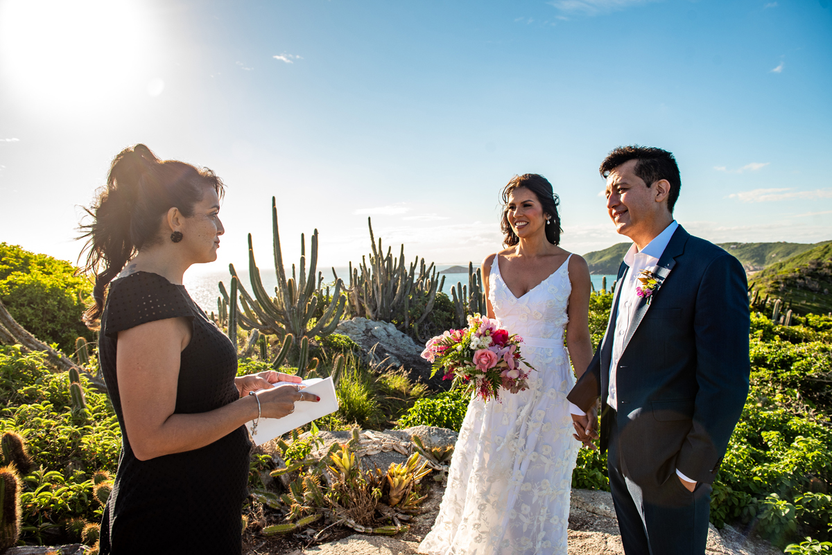 No alto de um mirante em Arraial do Cabo, com o mar azul profundo como testemunha, Rosi e Marcelo disseram “sim” ao amor que construíram com calma, verdade e parceria.