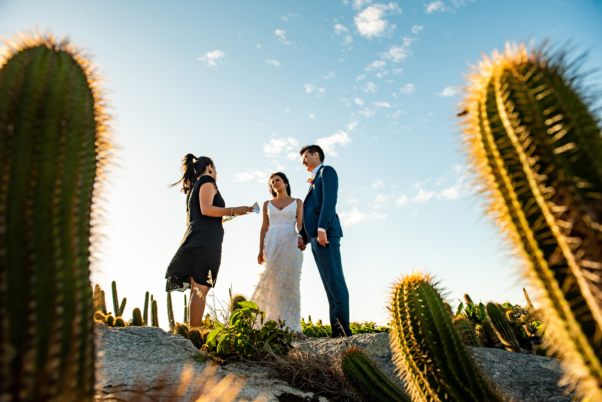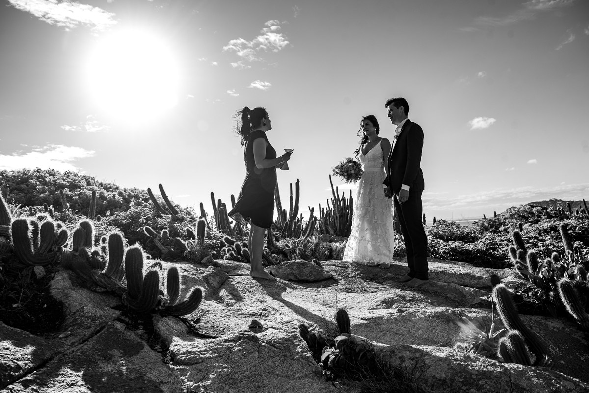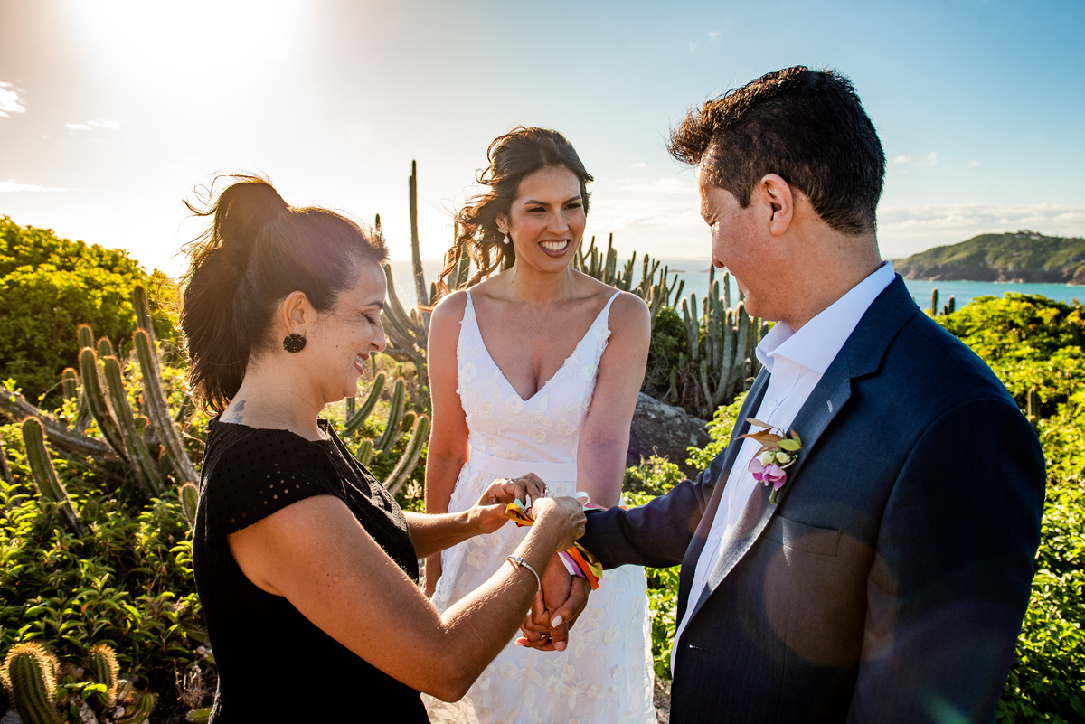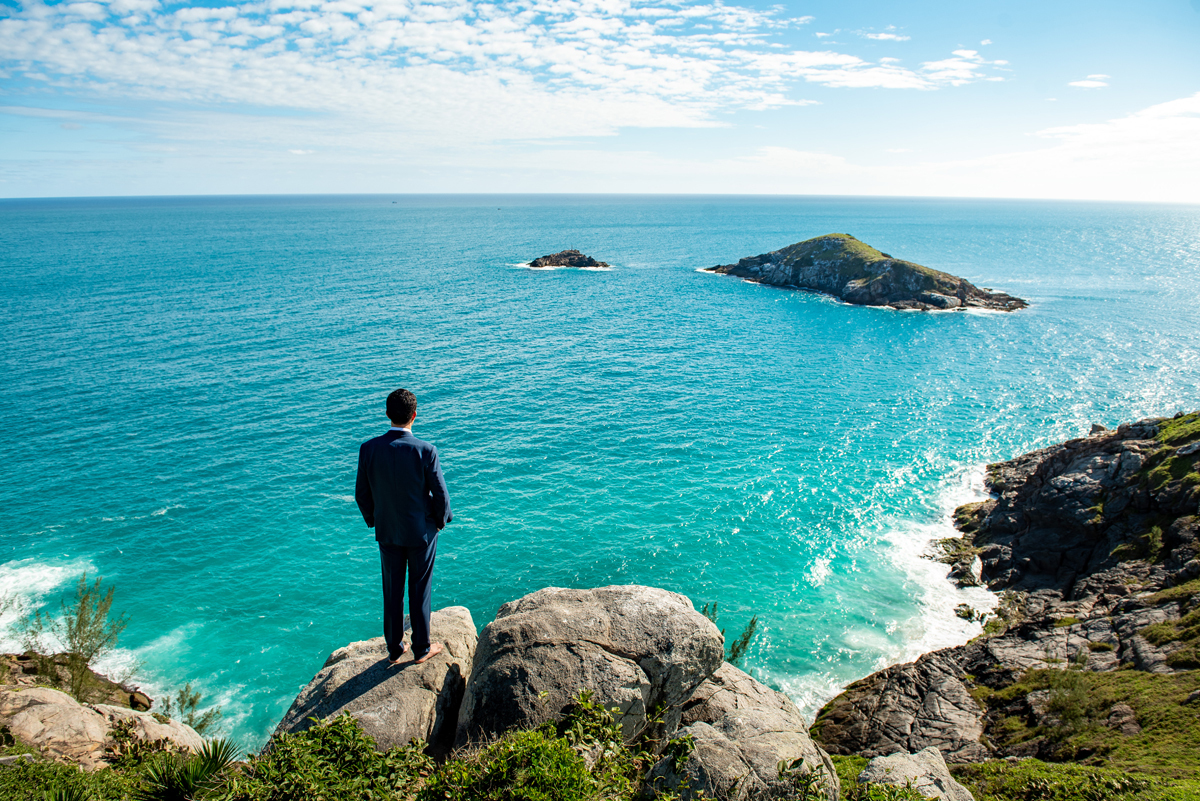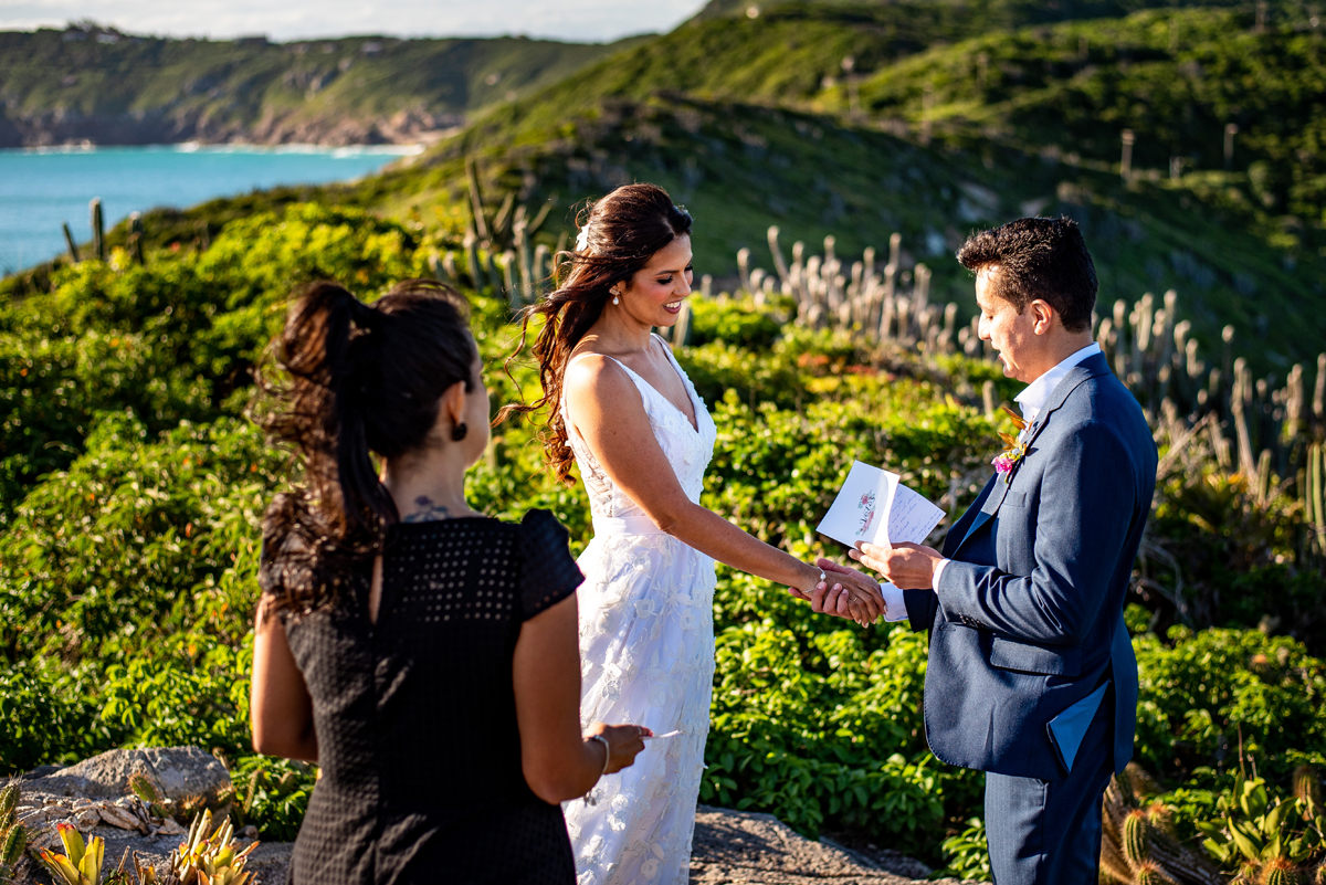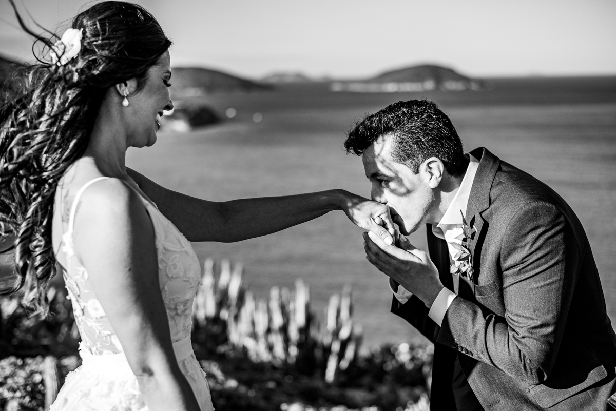 No alto de um mirante em Arraial do Cabo, com o mar azul profundo como testemunha, Rosi e Marcelo disseram “sim” ao amor que construíram com calma, verdade e parceria.