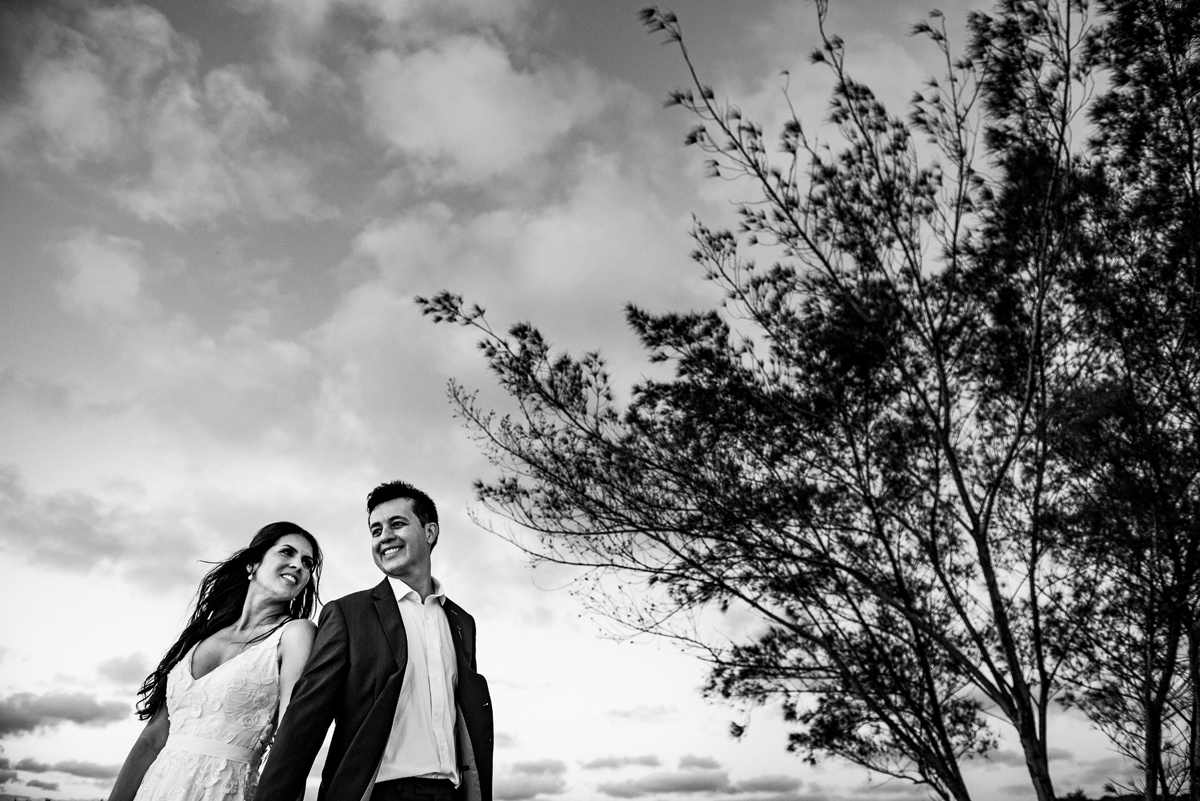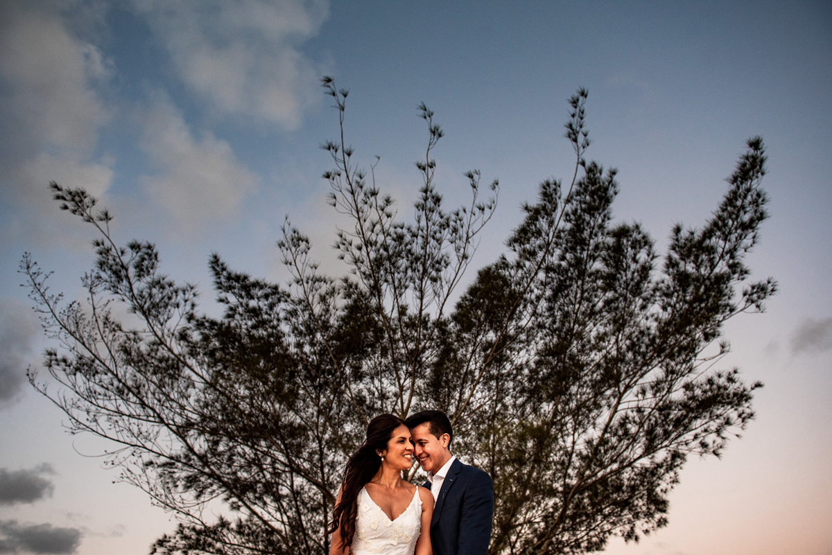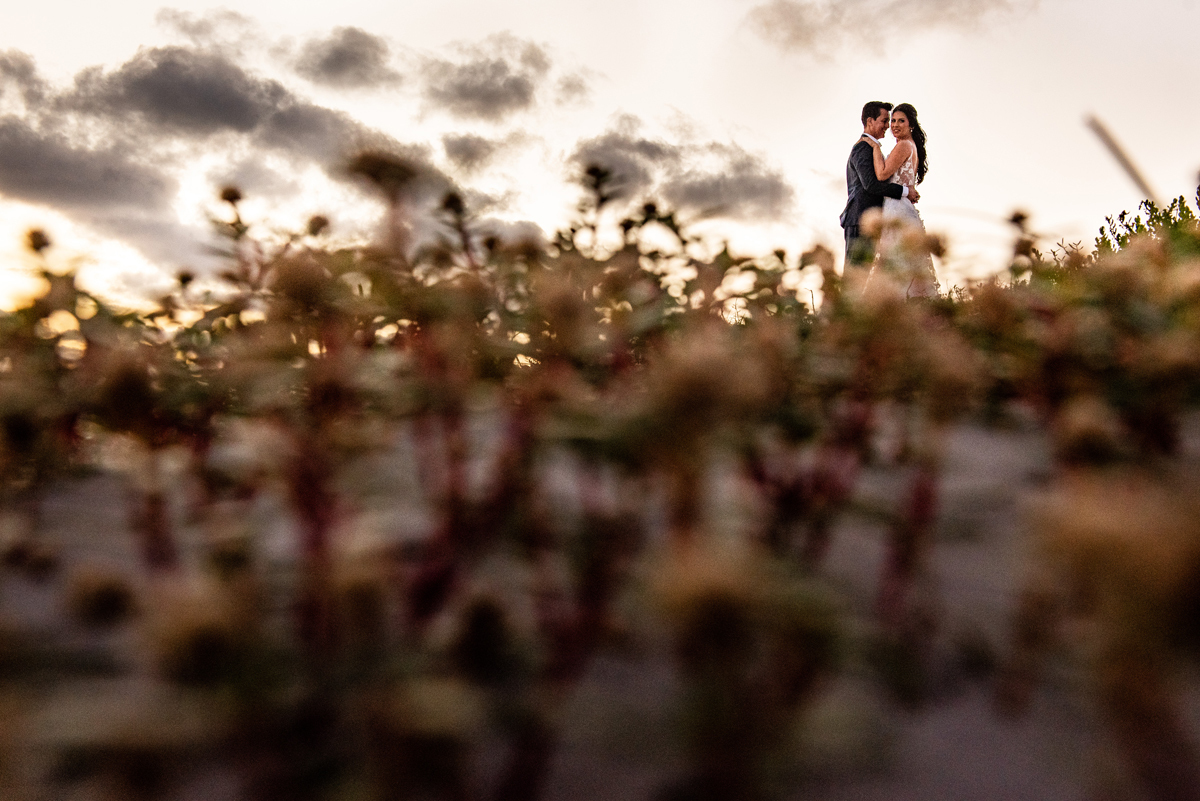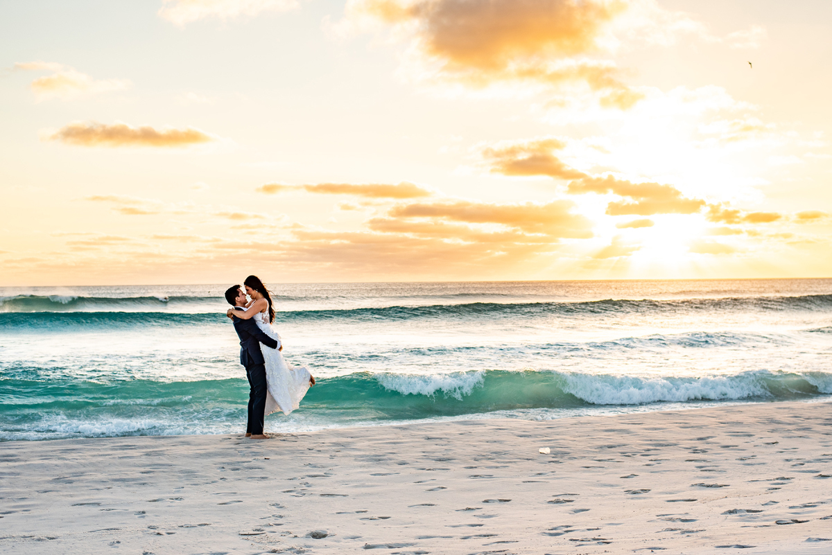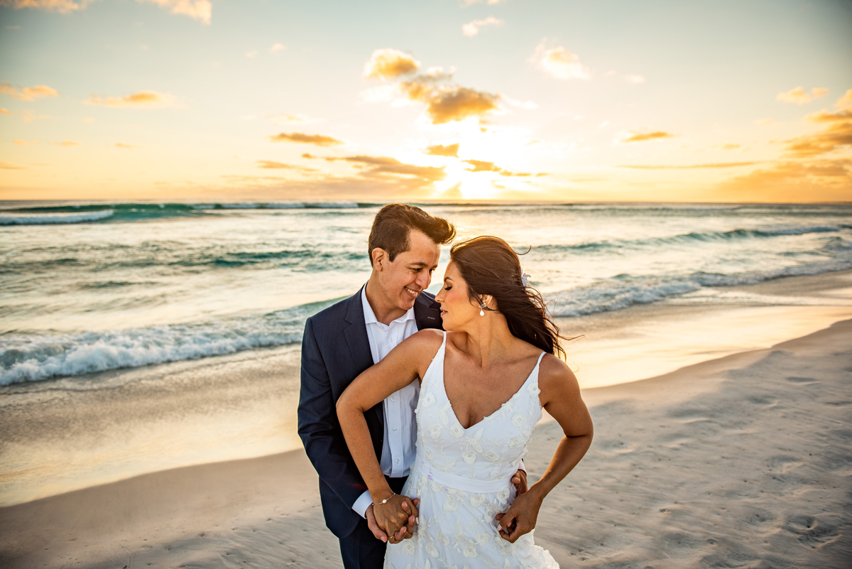 Depois da cerimônia, eles desceram para a praia, pé na areia e coração leve, deixando o pôr do sol pintar o ensaio com tons dourados.