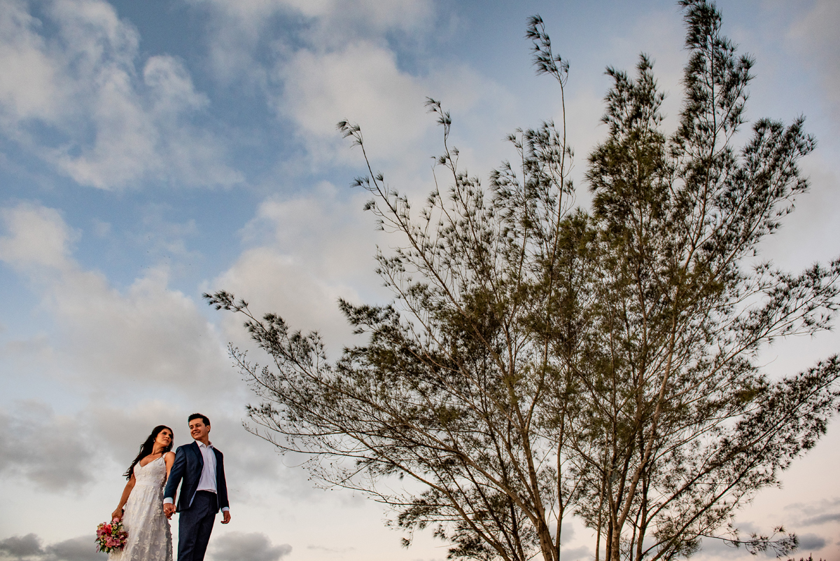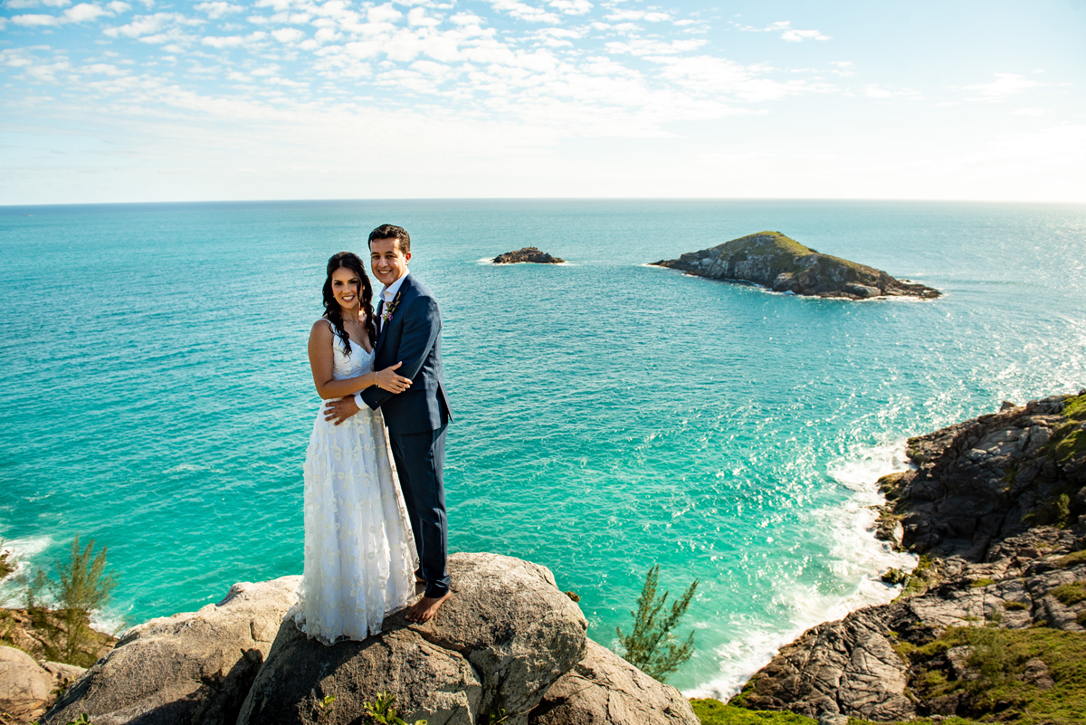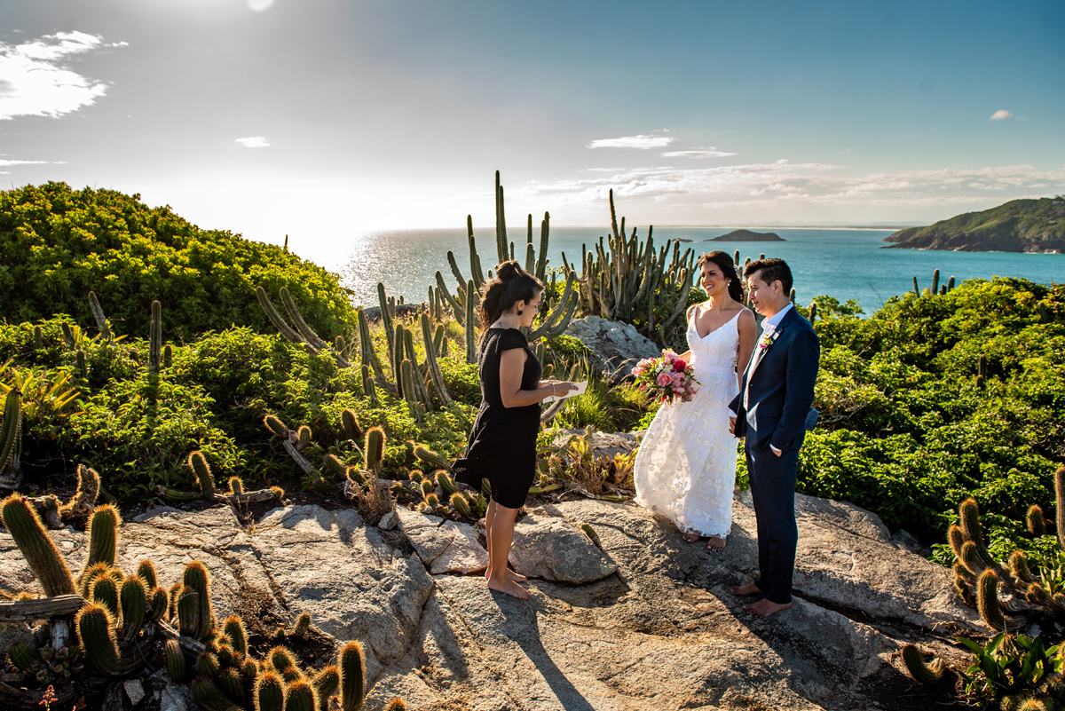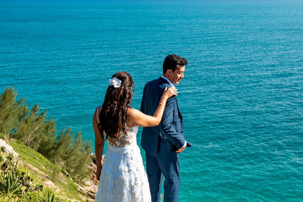 Um casamento que começou no alto e terminou abraçado ao mar — do jeitinho que tinha que ser.