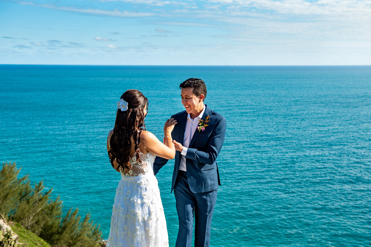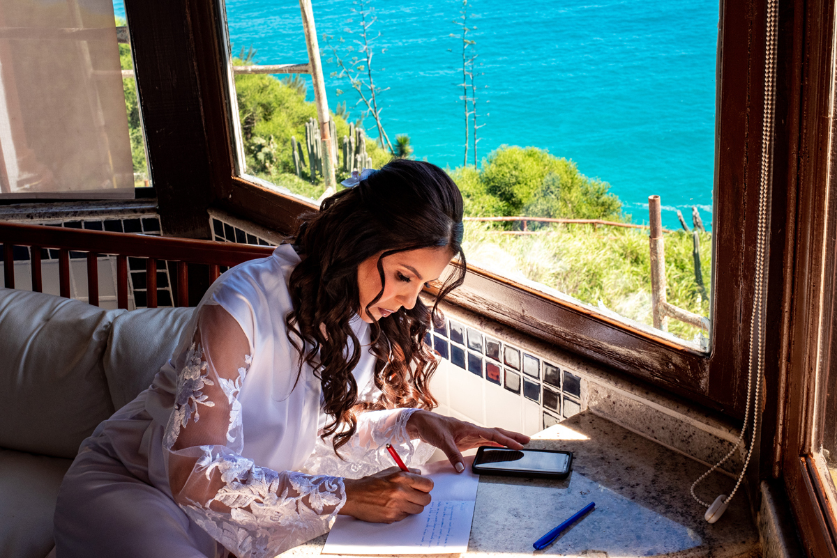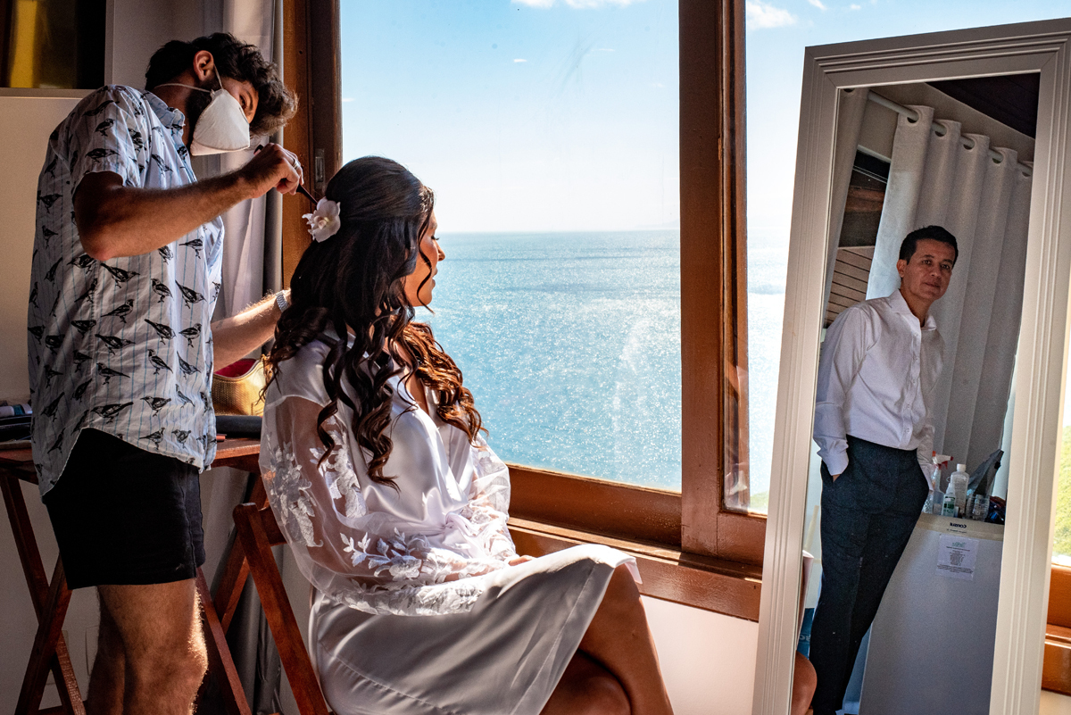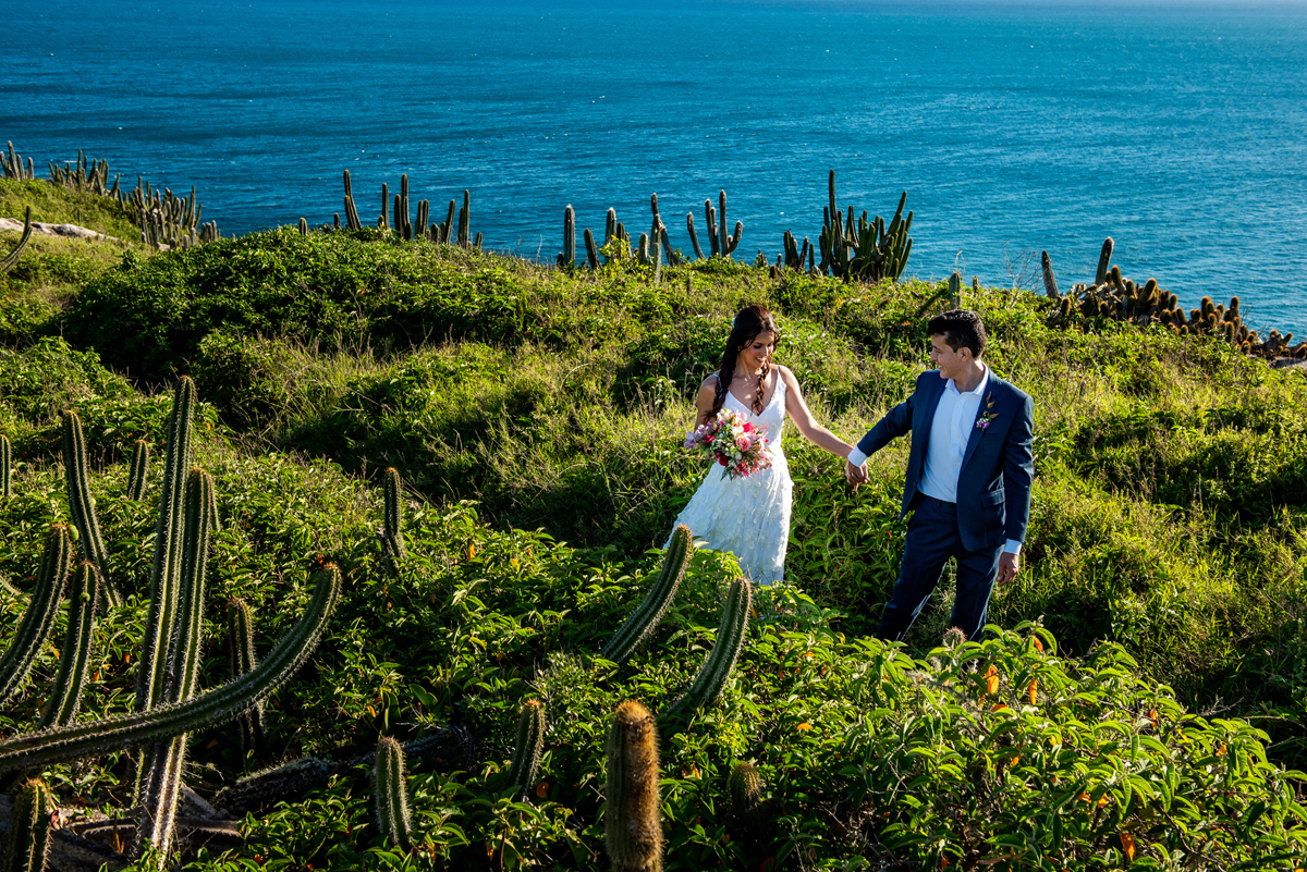 Um casamento que começou no alto e terminou abraçado ao mar — do jeitinho que tinha que ser.