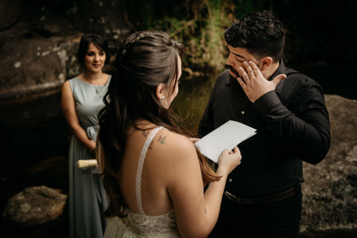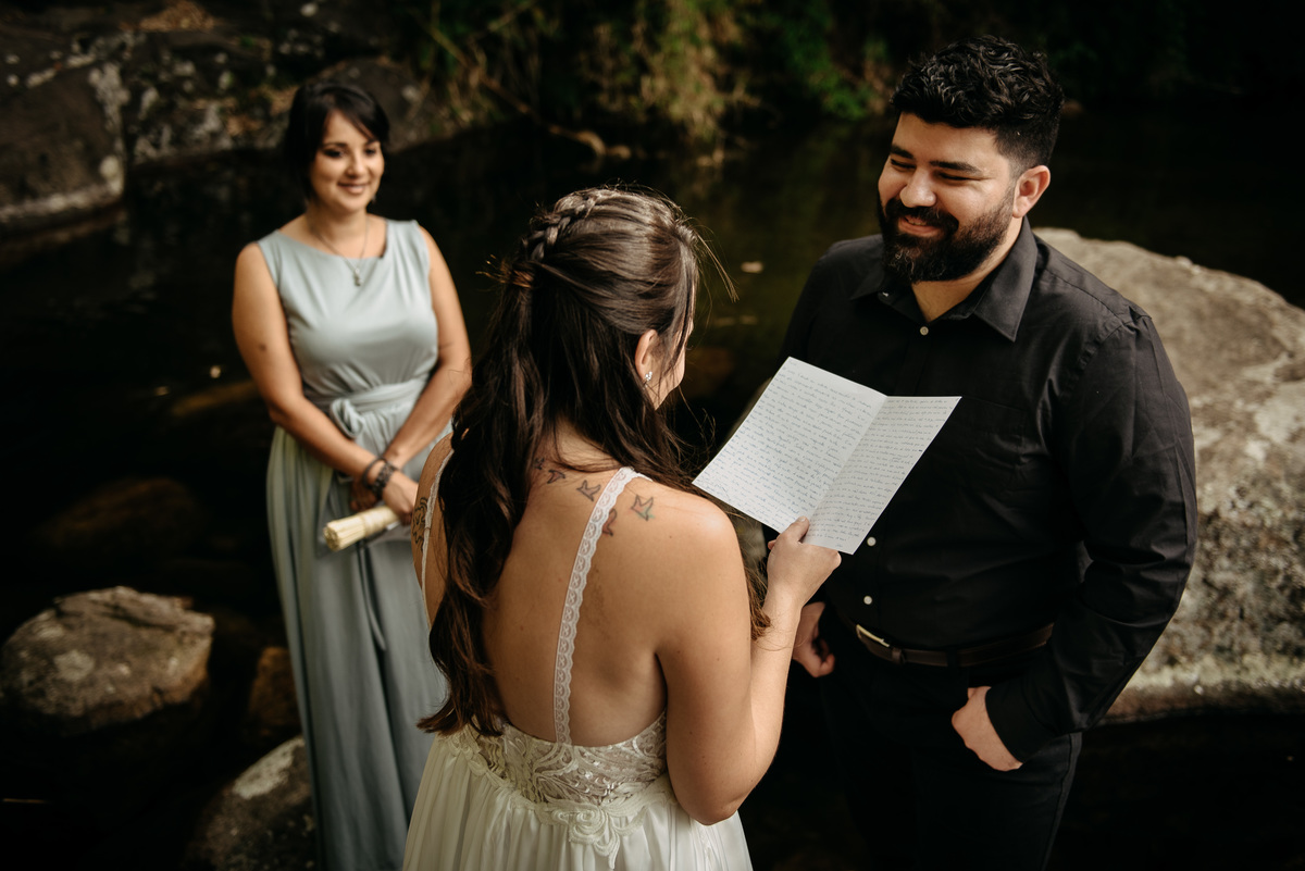 Depois, aos pés de uma cachoeira imponente e totalmente viva, eles disseram “sim” de um jeito único e emocionante.