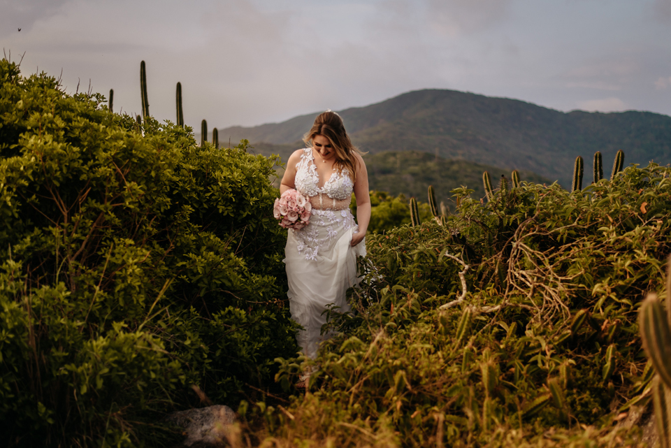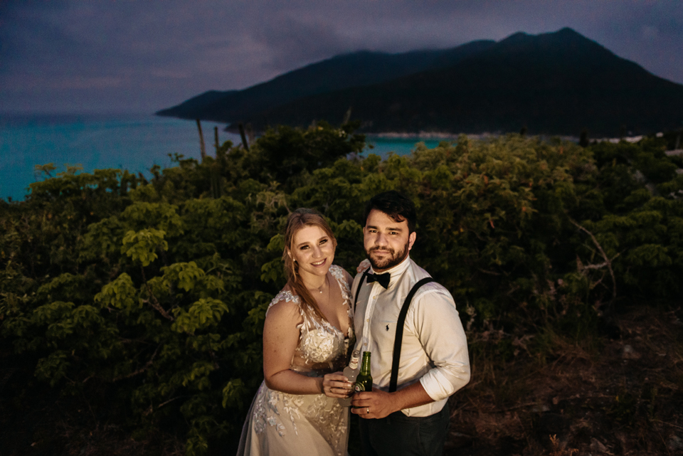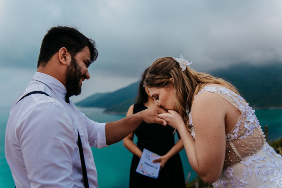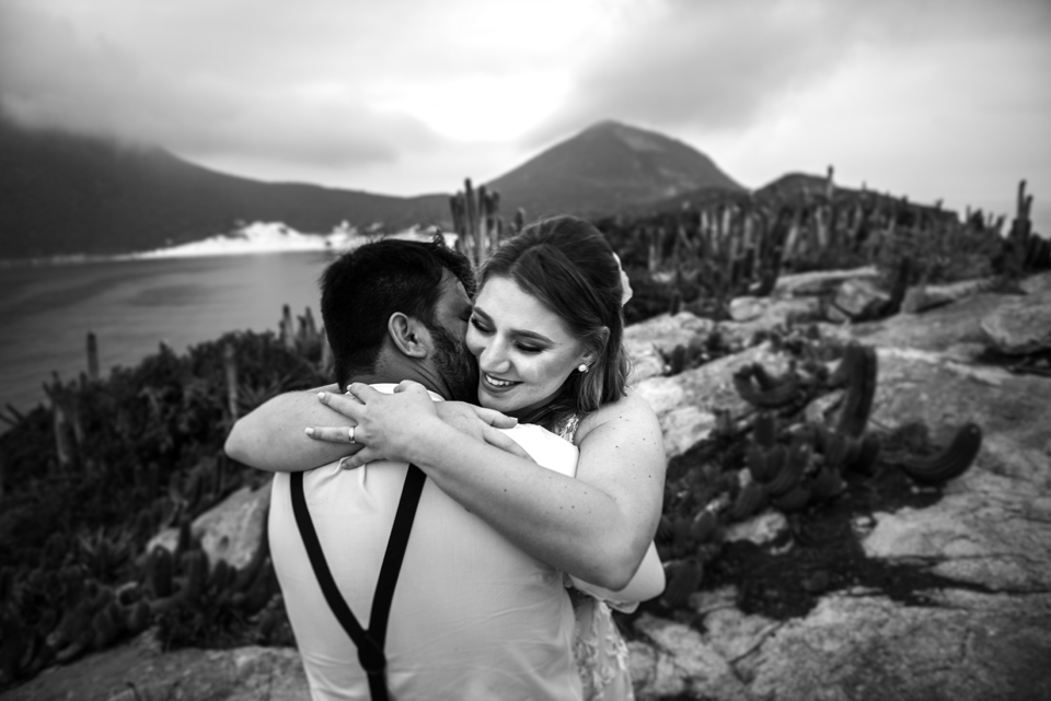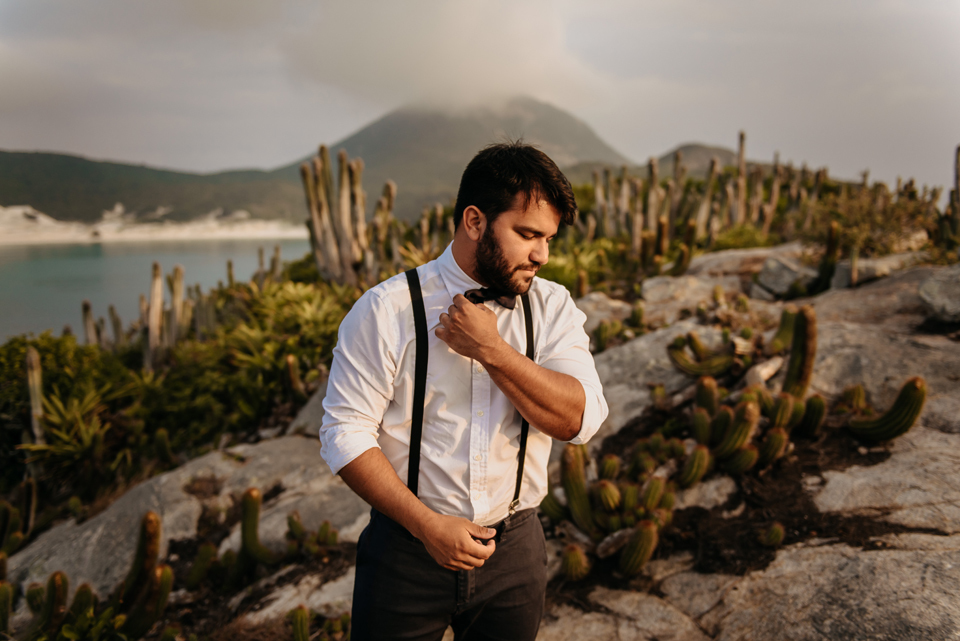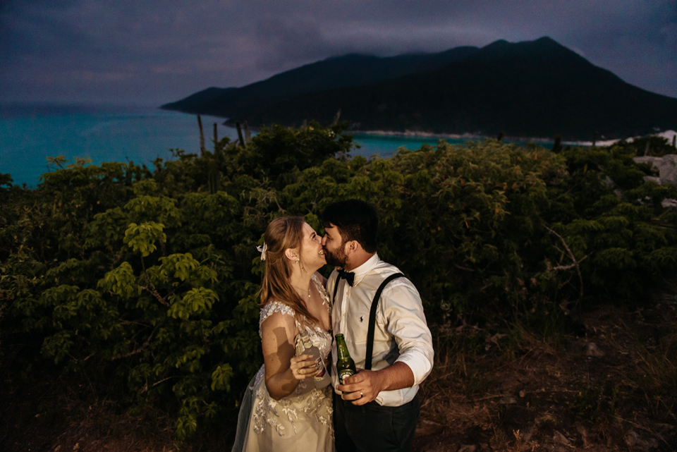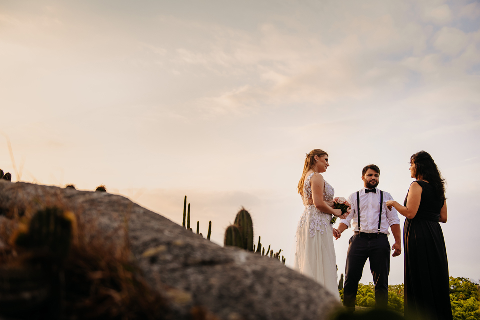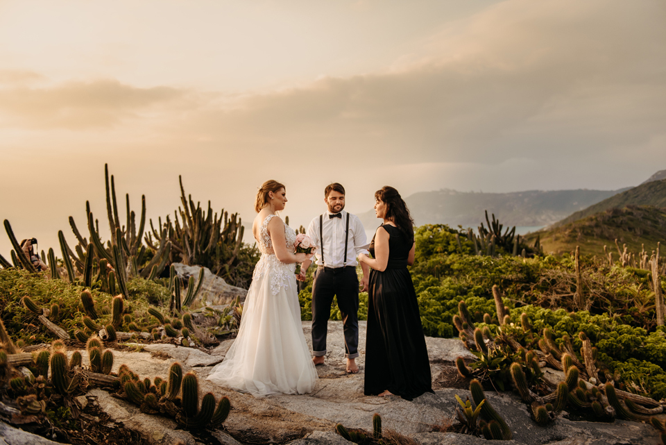 No mirante do Pontal do Atalaia, com o mar aberto e o vento soprando leve, Vivian e Pedro disseram “sim” do jeitinho deles: com risadas, leveza e aquela energia boa que só um casal divertido tem.