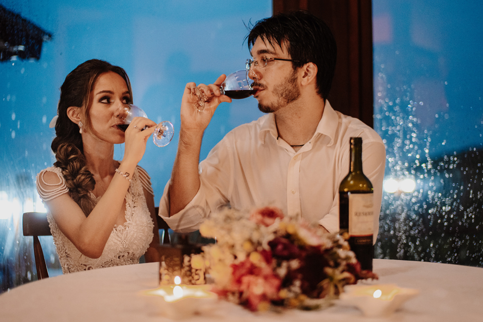 E depois, já casados, eles transformaram tudo em diversão: fotos espontâneas, risadas e um brinde com vinho que deixou o final do dia ainda mais especial.