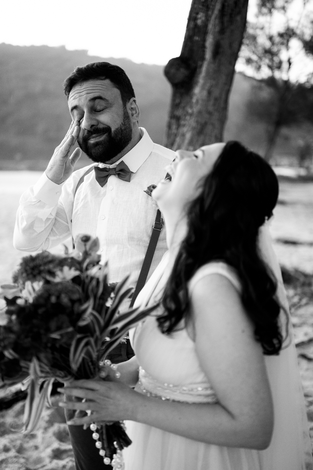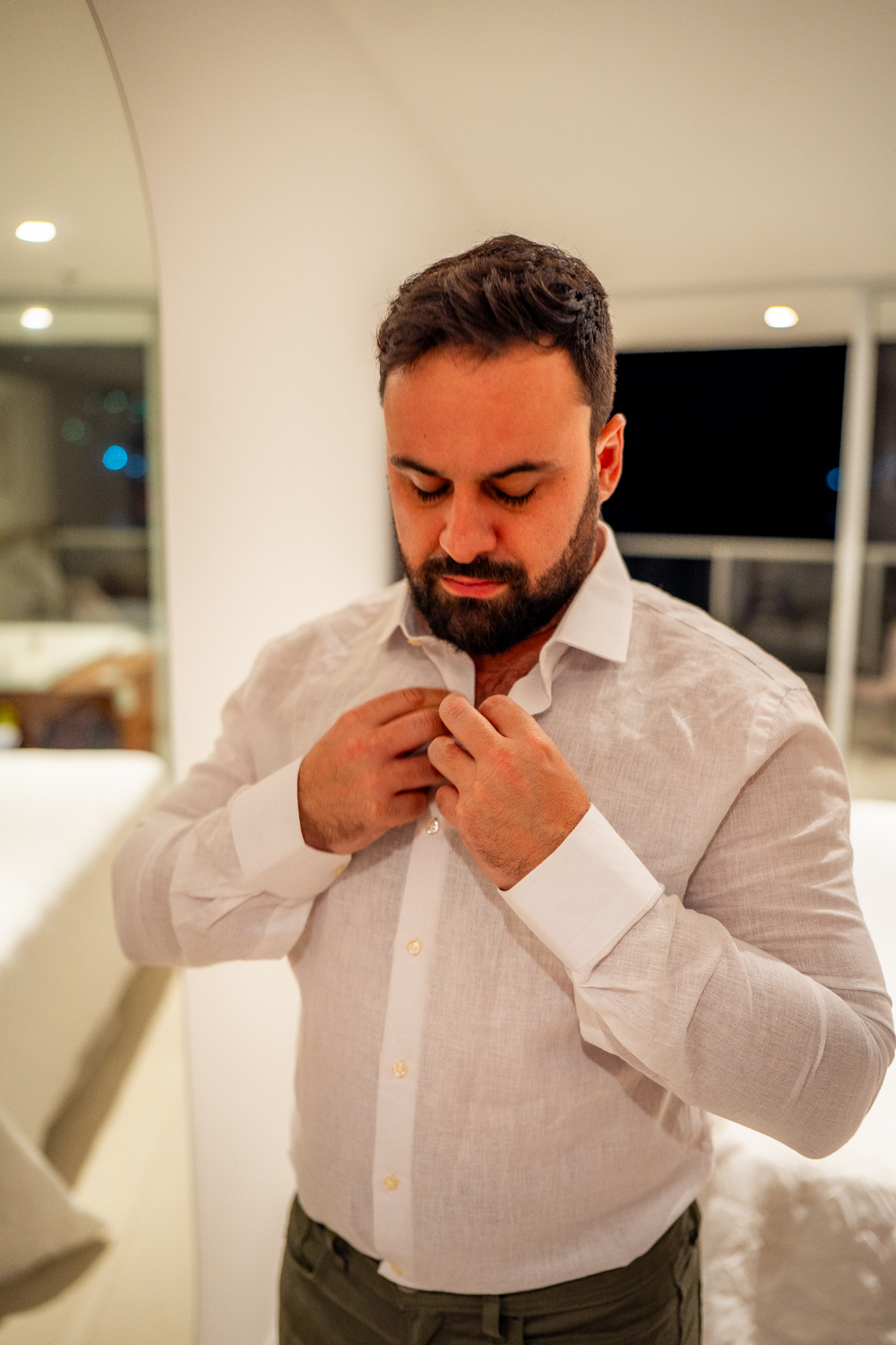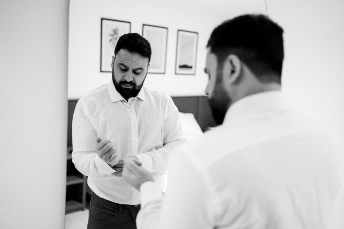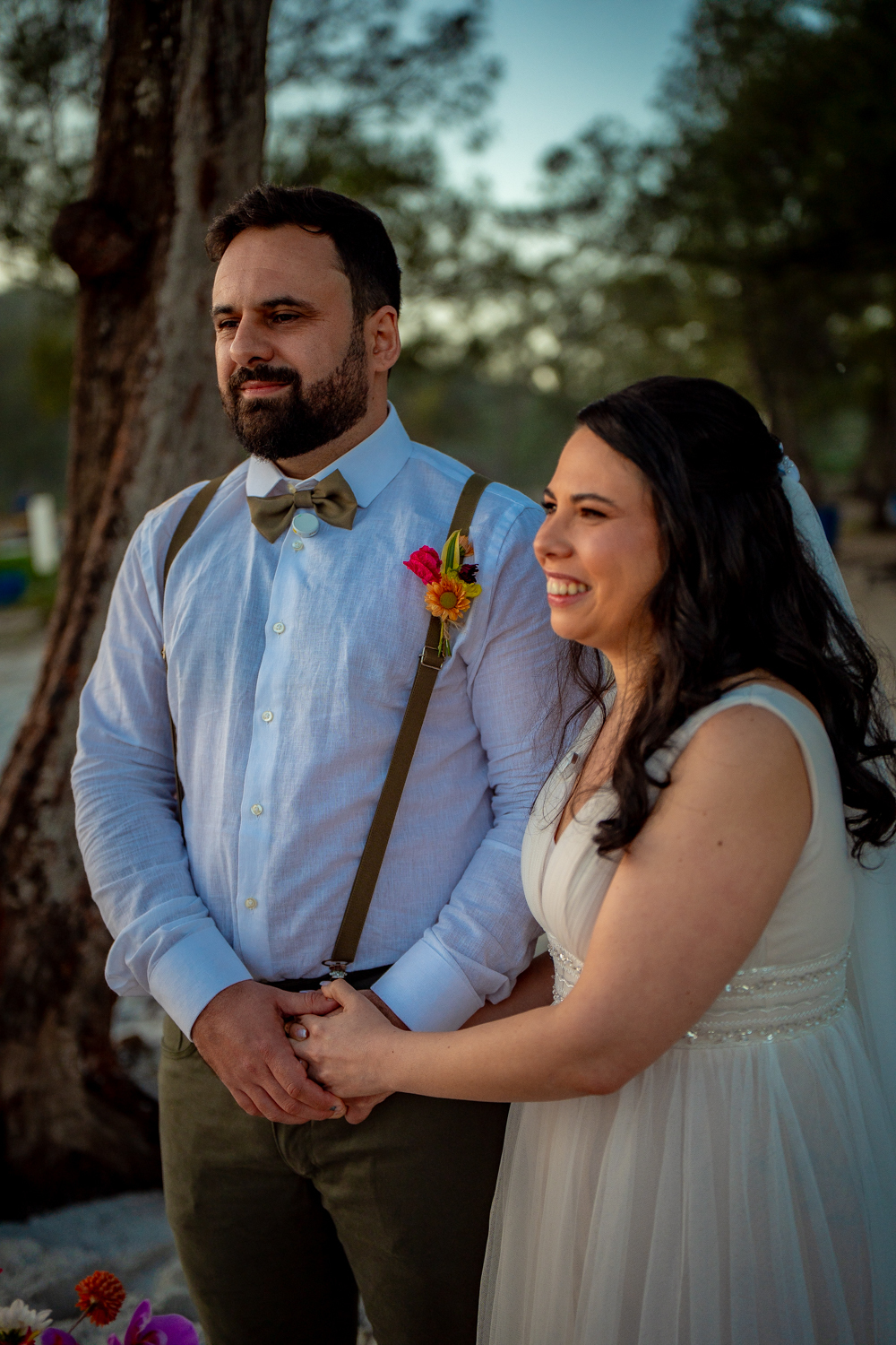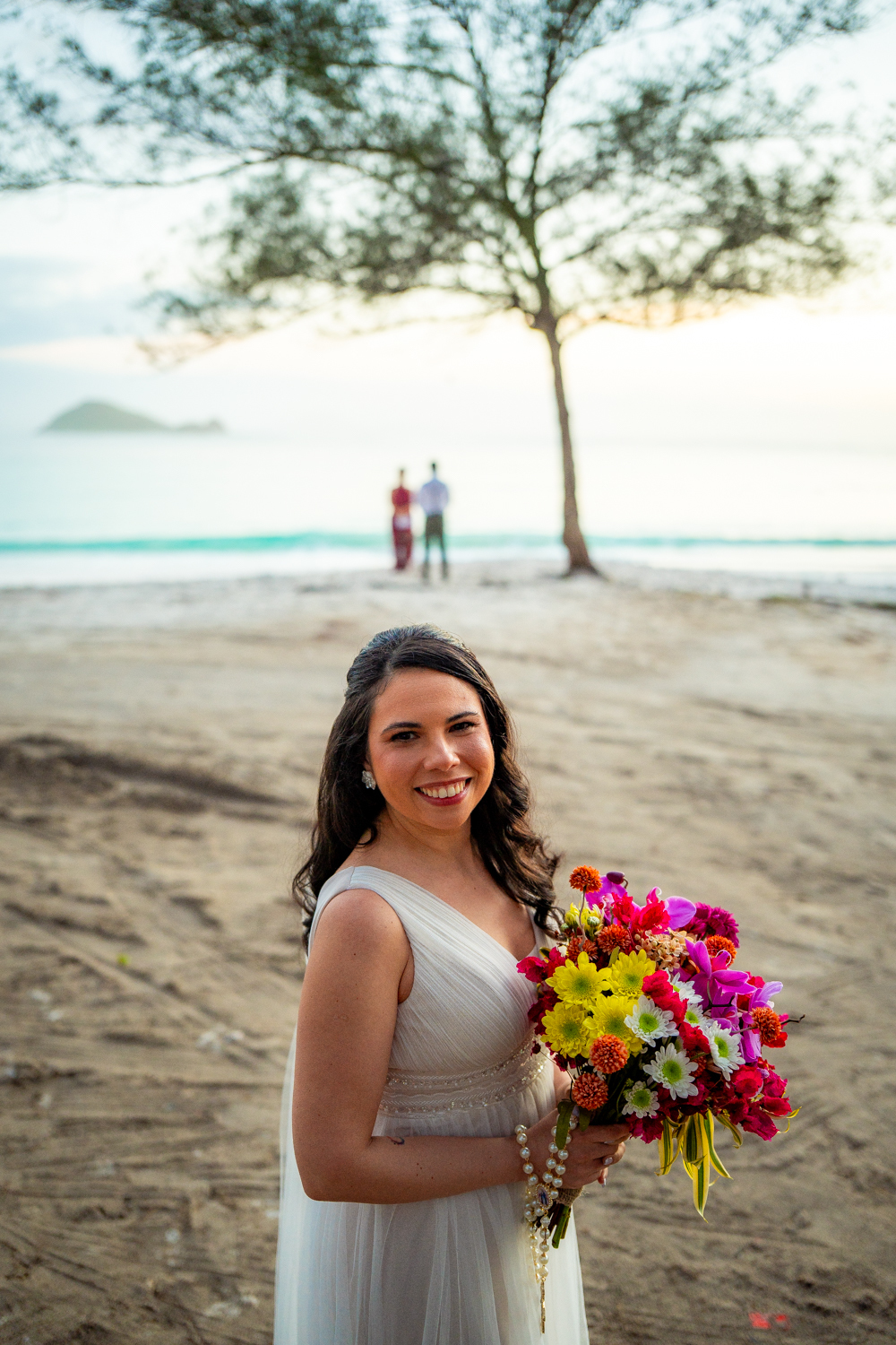 O casamento aconteceu na Prainha, em Arraial do Cabo, ao nascer do sol. Um cenário que traduz exatamente o que eles vivem hoje: calma, verdade e recomeço. A luz suave da manhã envolveu a cerimônia, enquanto o mar testemunhava uma história que não precisou correr — apenas esperar o tempo certo.