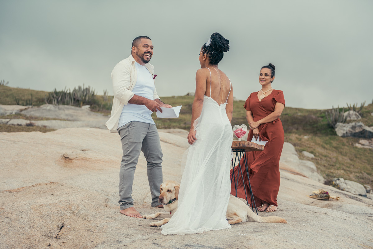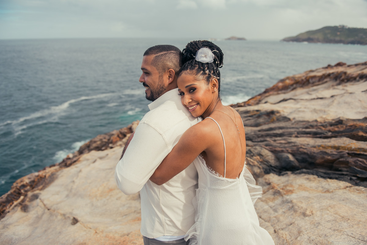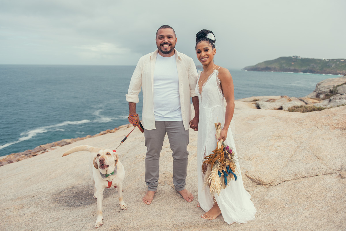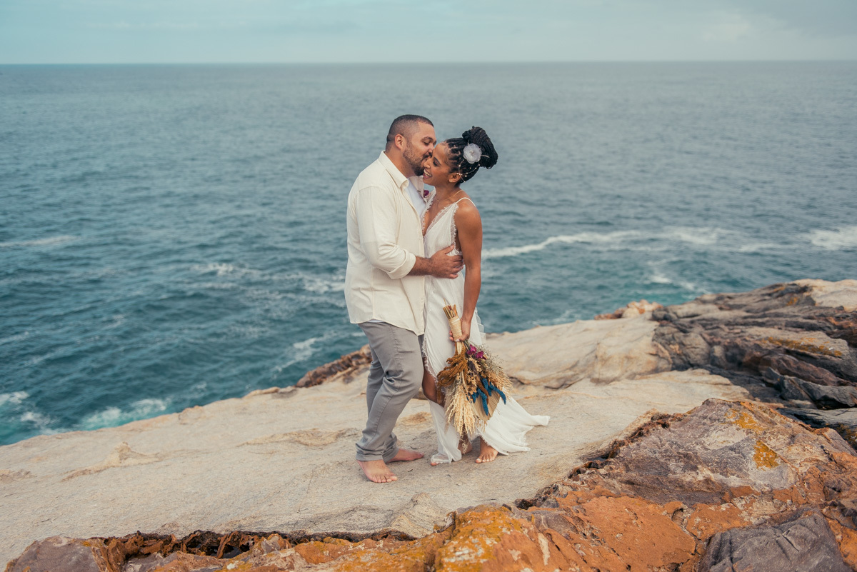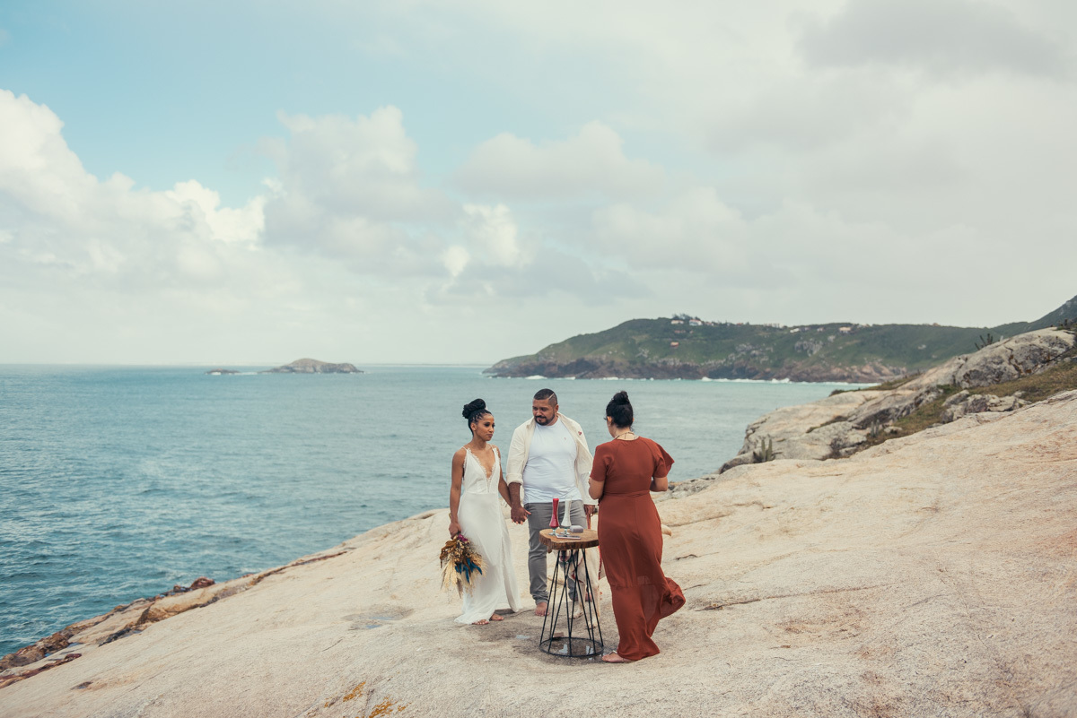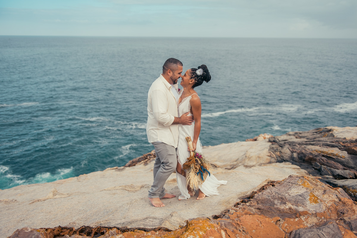 Em Arraial, de frente para o mar, Amanda e Ronaldo escolheram um cenário simples e impactante para celebrar o casamento. O céu estava levemente nublado, criando uma atmosfera suave que deixou tudo ainda mais singular.