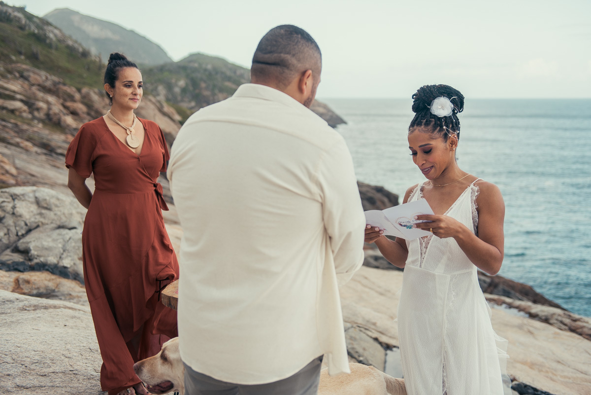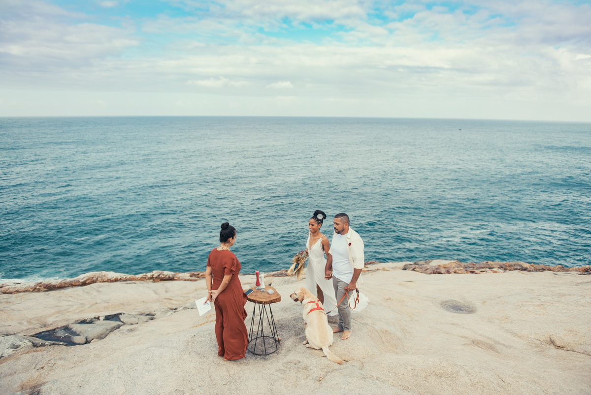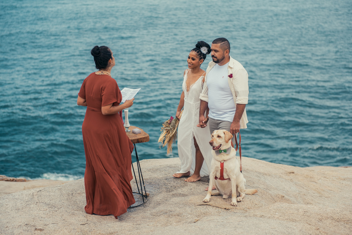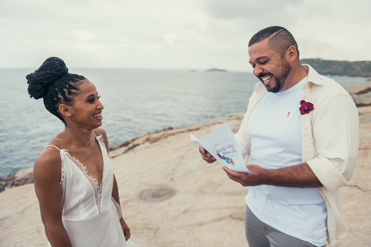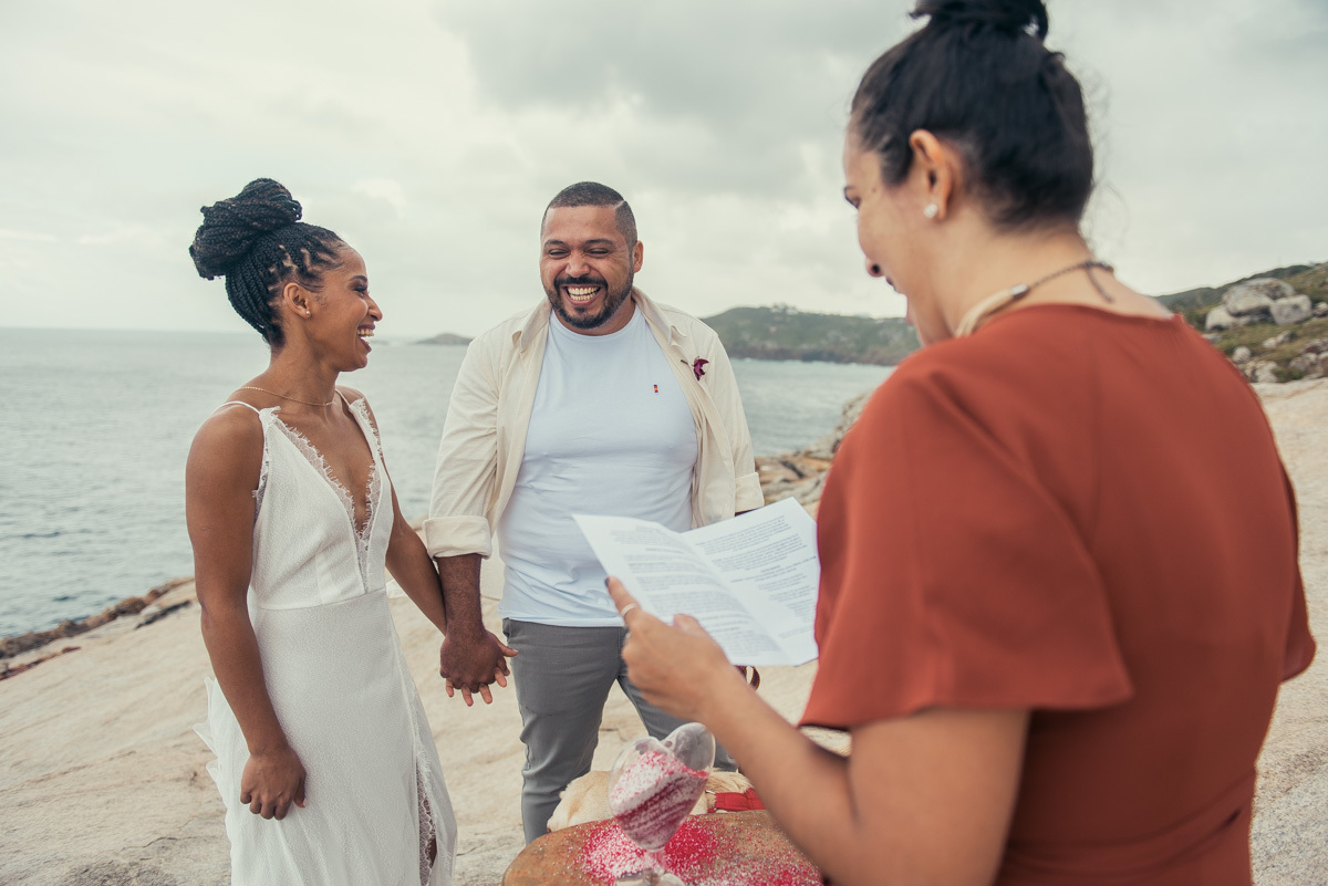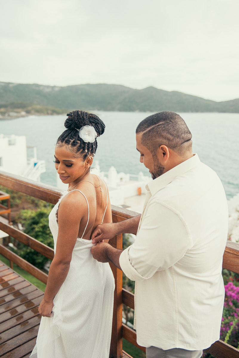 Em Arraial, de frente para o mar, Amanda e Ronaldo escolheram um cenário simples e impactante para celebrar o casamento. O céu estava levemente nublado, criando uma atmosfera suave que deixou tudo ainda mais singular.
