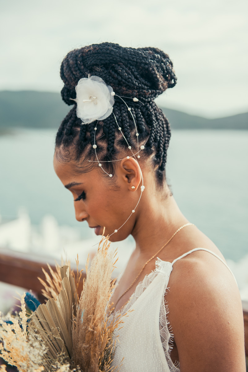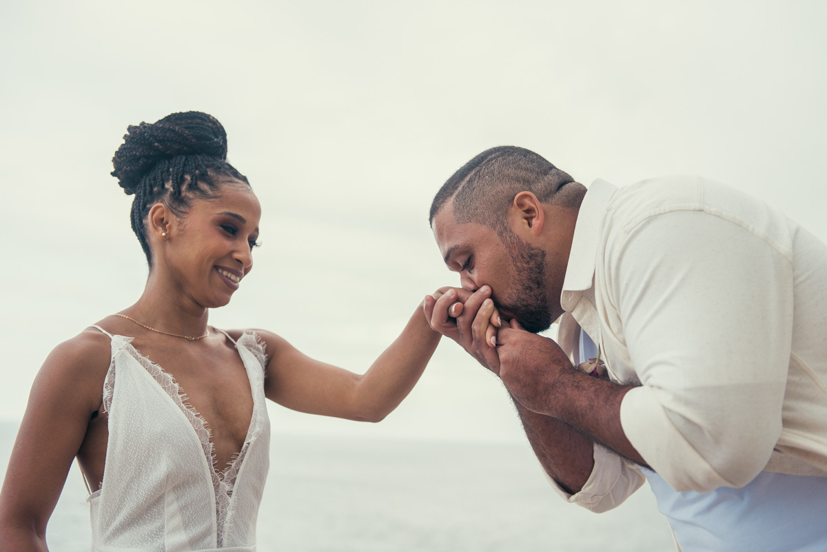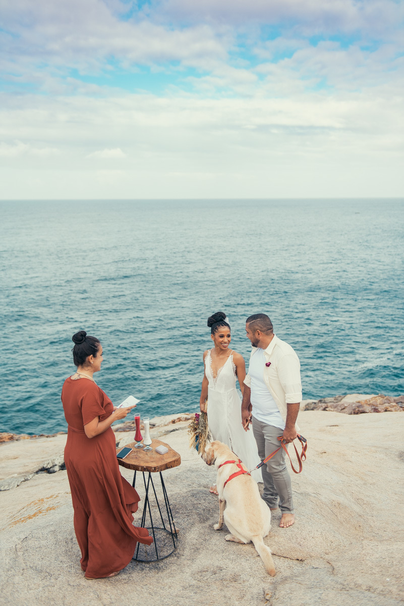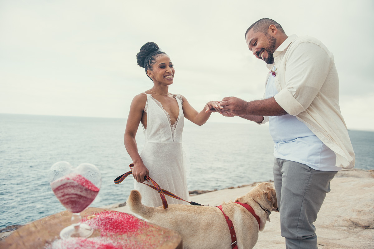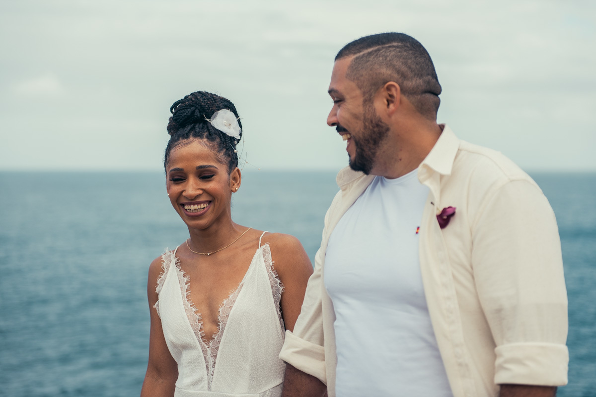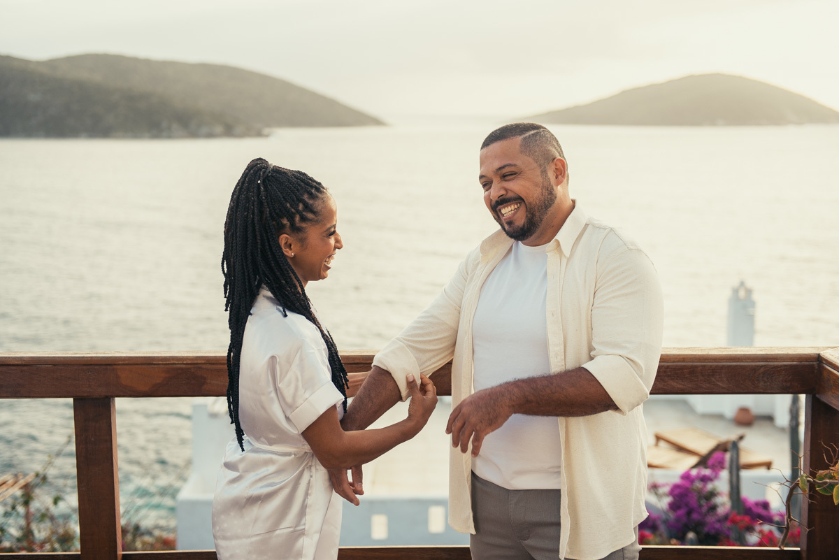 Em Arraial, de frente para o mar, Amanda e Ronaldo escolheram um cenário simples e impactante para celebrar o casamento. O céu estava levemente nublado, criando uma atmosfera suave que deixou tudo ainda mais singular.