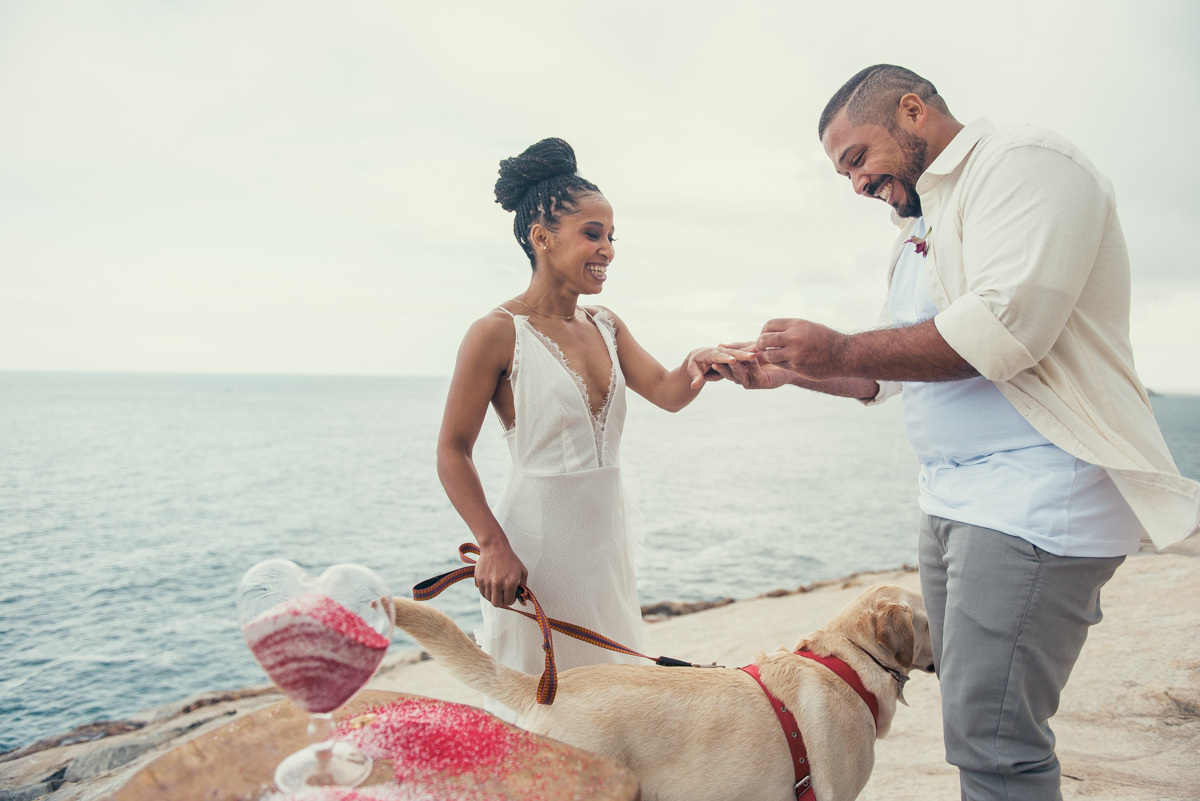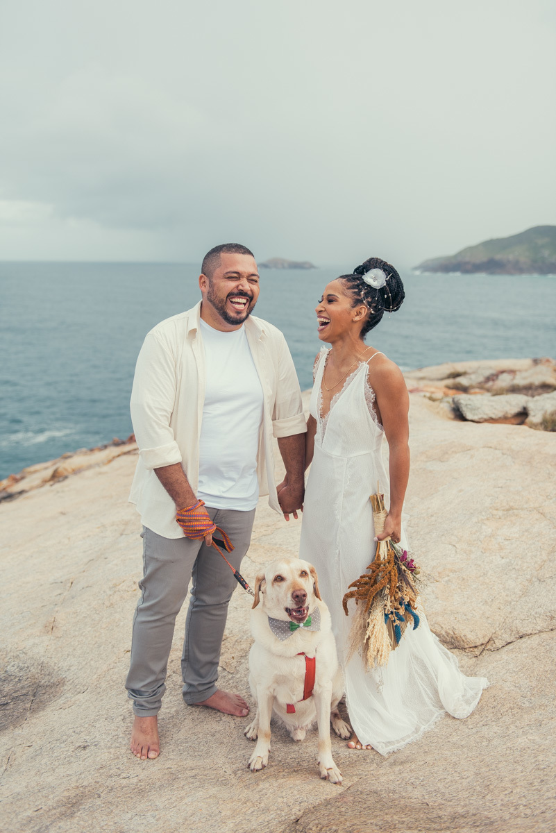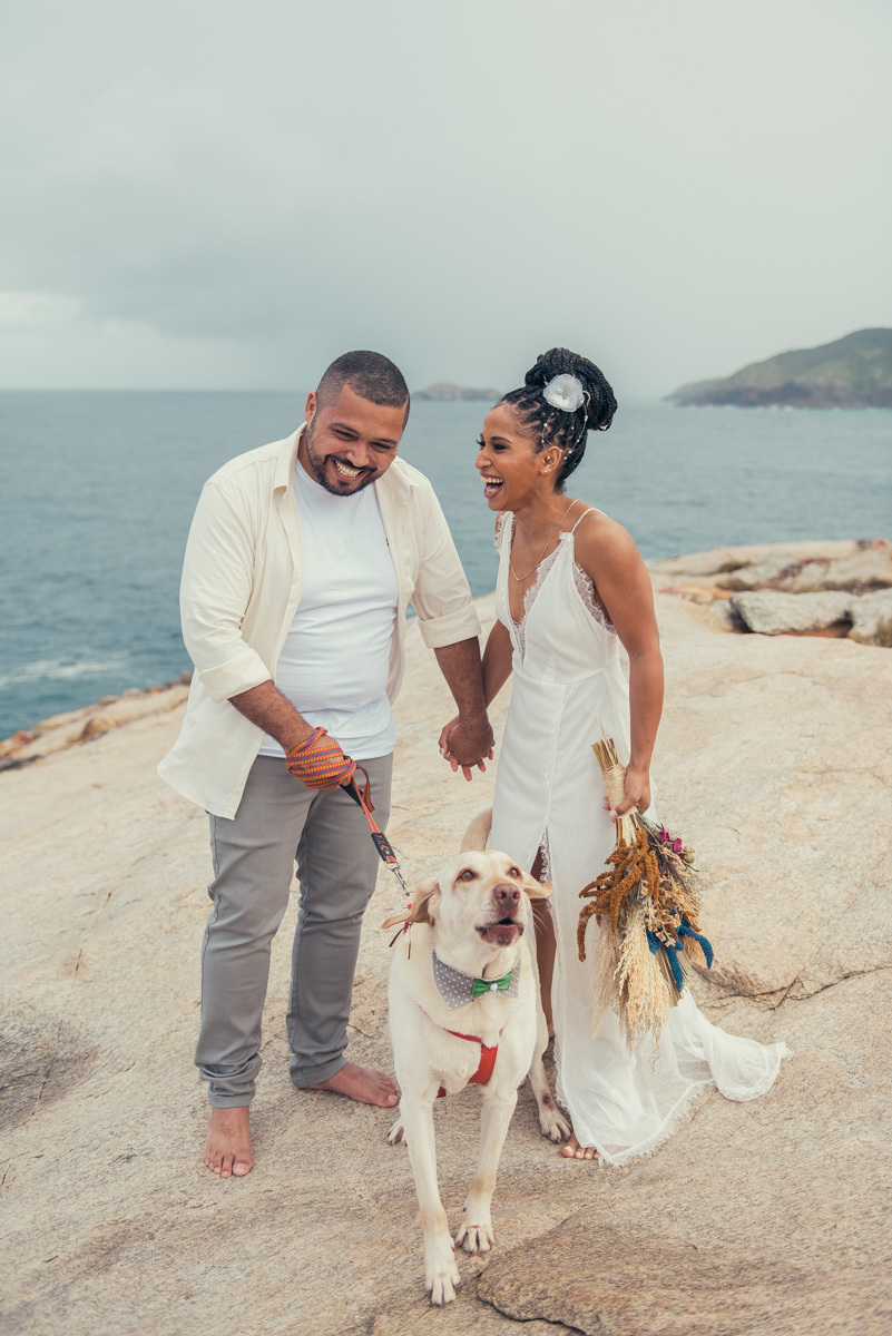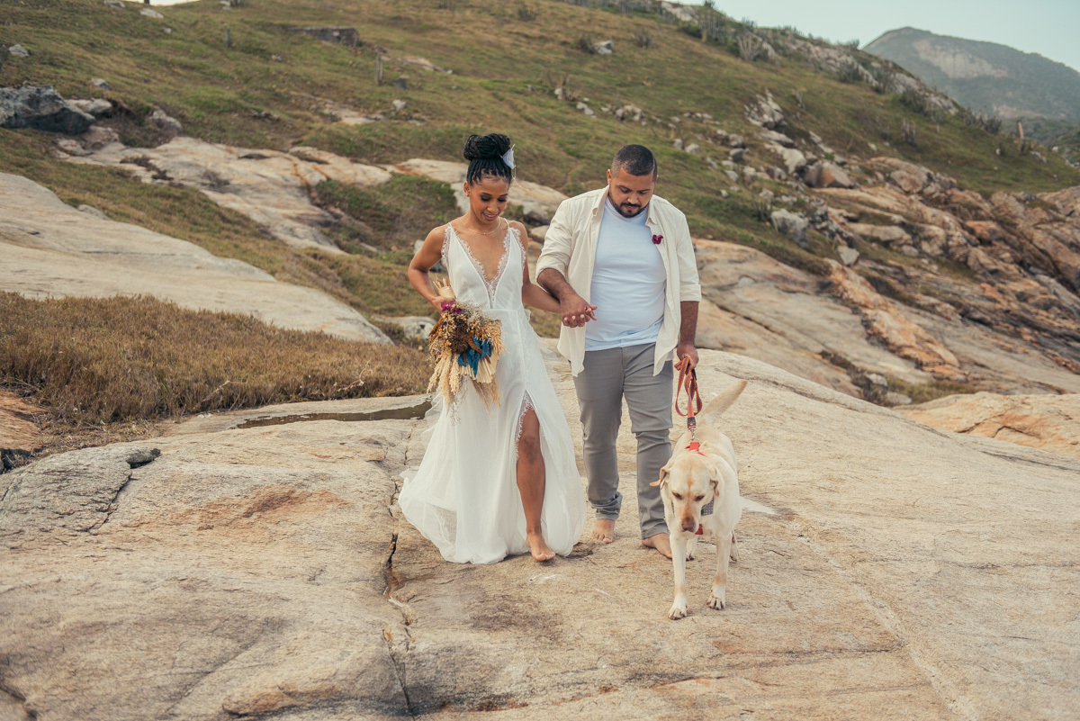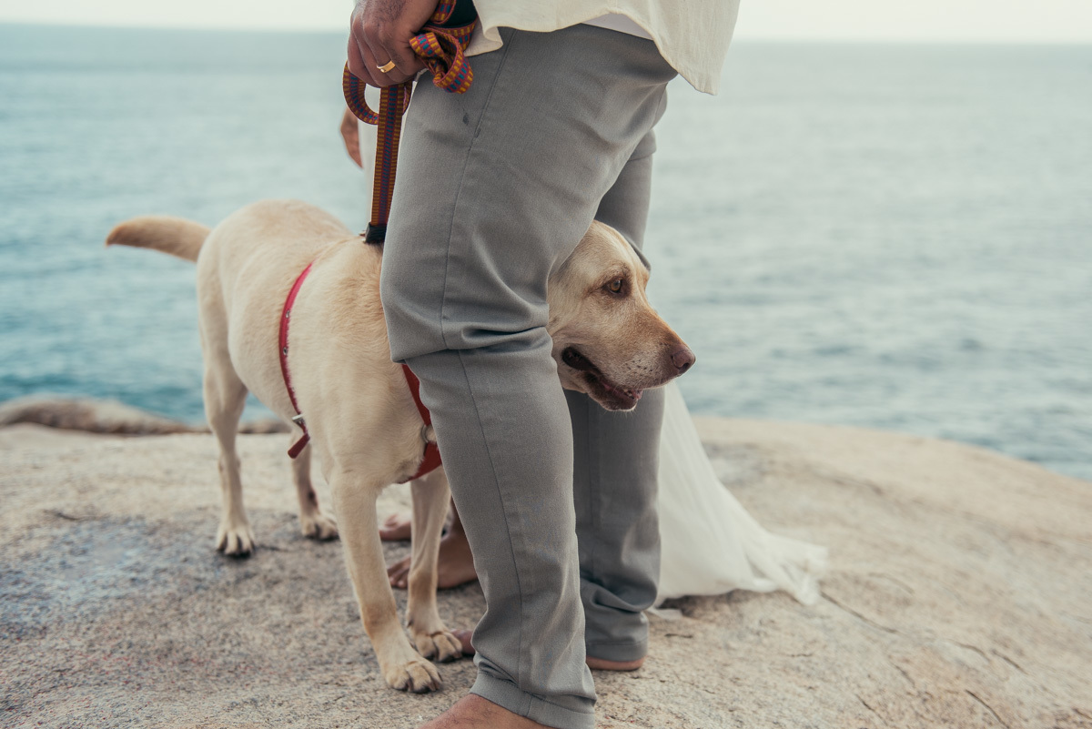 Desde o making of até a cerimônia, havia um convidado especial: o cachorro do casal, presente em cada etapa do dia, participando com naturalidade dessa escolha tão significativa.